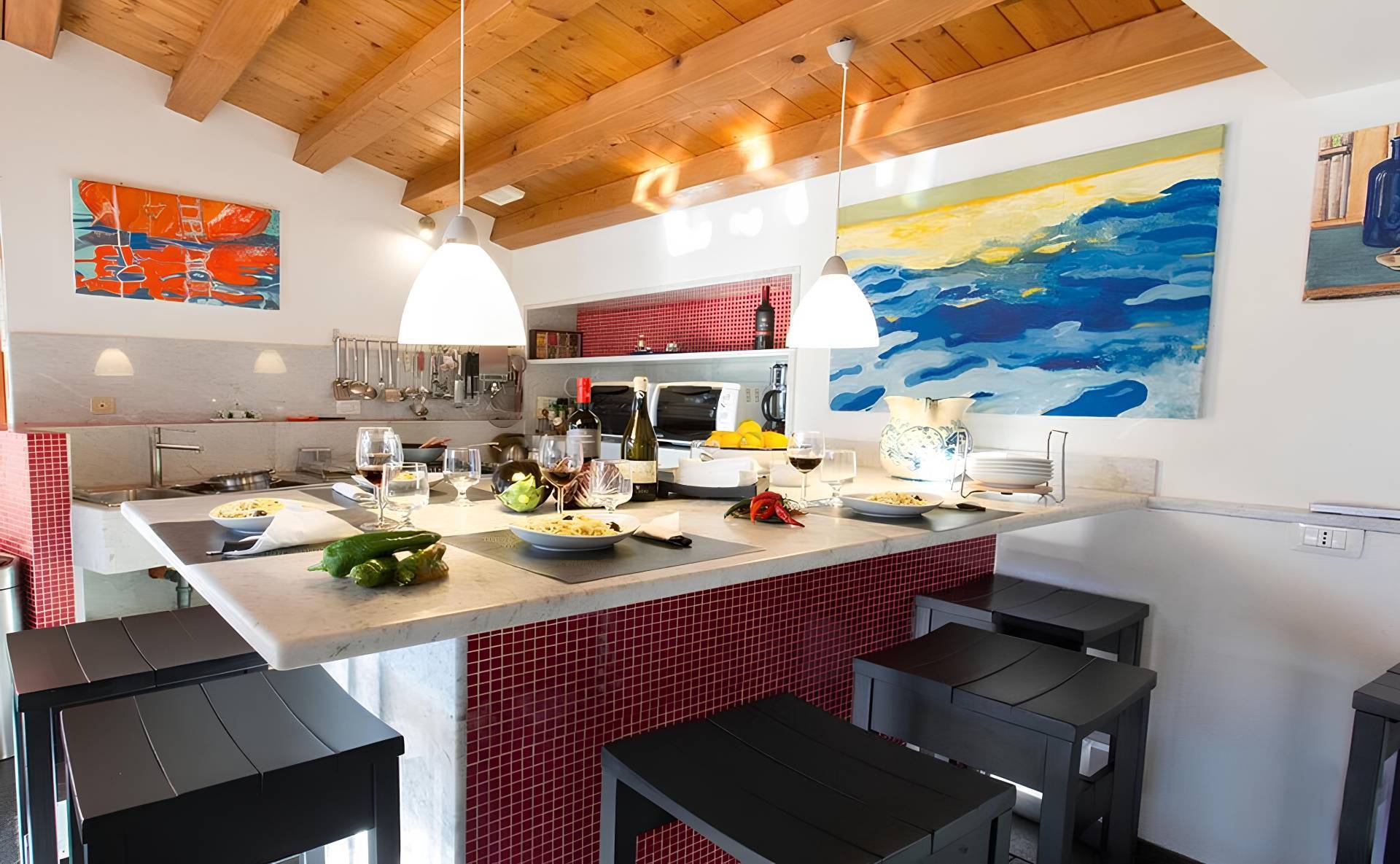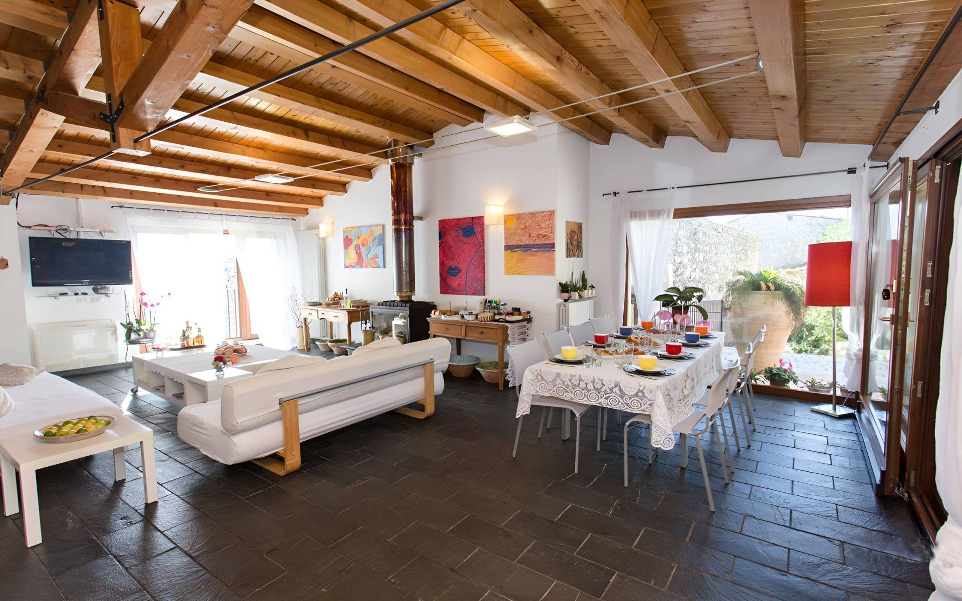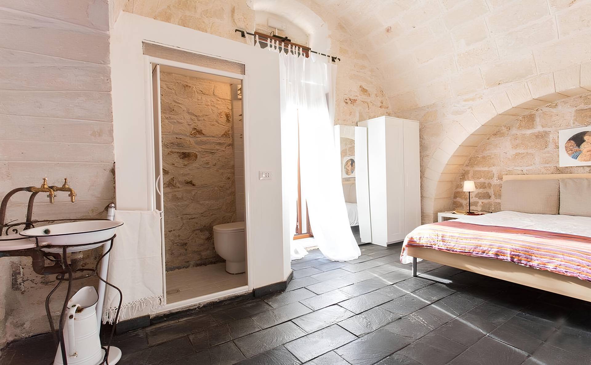Da questo livello tramite una scala interna accediamo a quella che la zona pi antica e caratteristica di questa dimora un' antica grotta, interamente ristrutturata e adibita a grande spazio di convivialit che sar di certo spunto di grande attenzione e apprezzamento dei vostri ospiti.