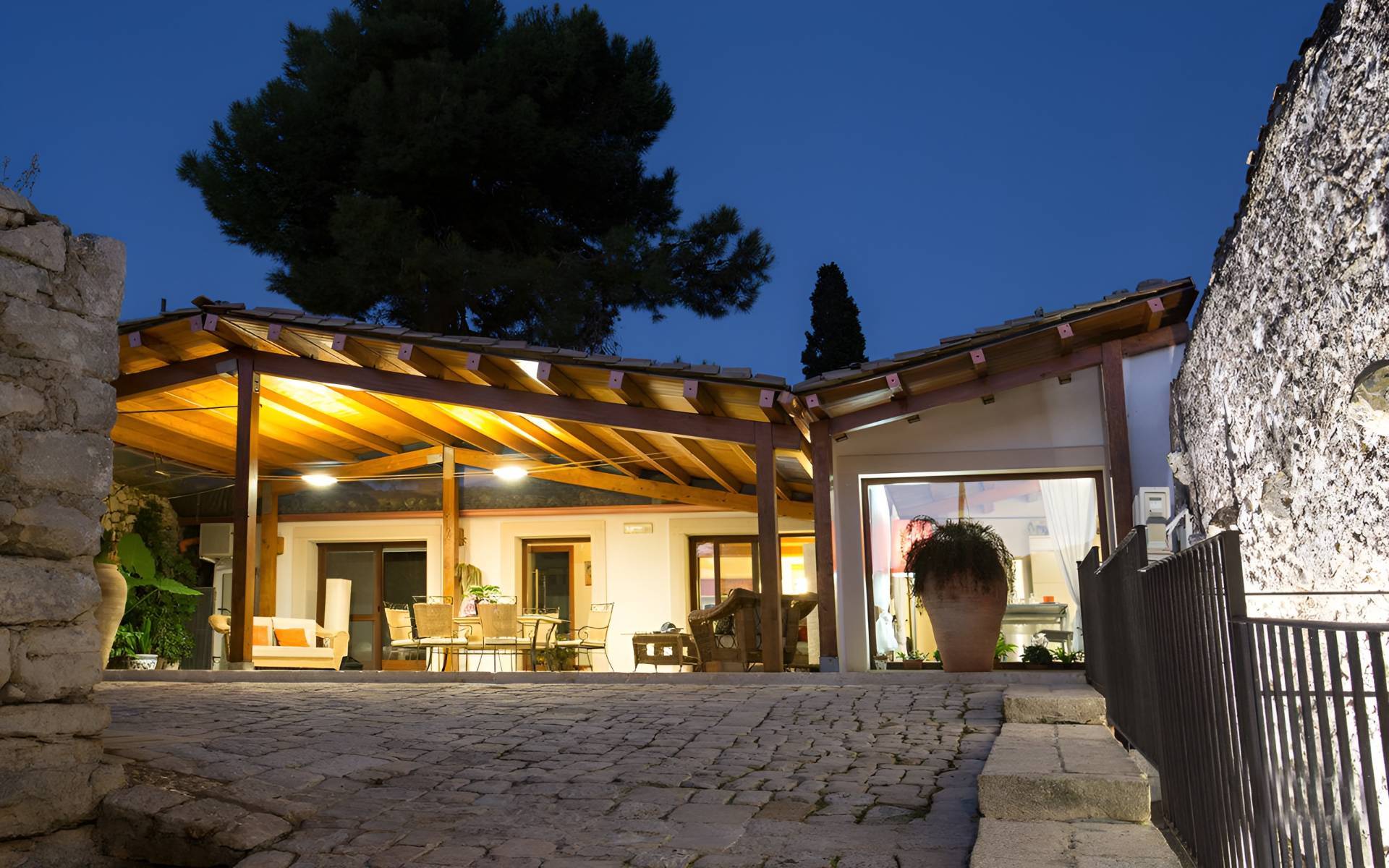 Immersa nell' accattivante e selvaggia campagna Ragusa sorge questo antico casale di campagna, interamente ristrutturato nel 2005, la cui fondazione risalente al 1683. L'ingresso si compone di un lungo e caratteristico viale alberato dove veniamo accolti da un' esplosione di profumi di campagna, caratteristici muri a secco in pietra ragusana e grandi palme ornamentali.