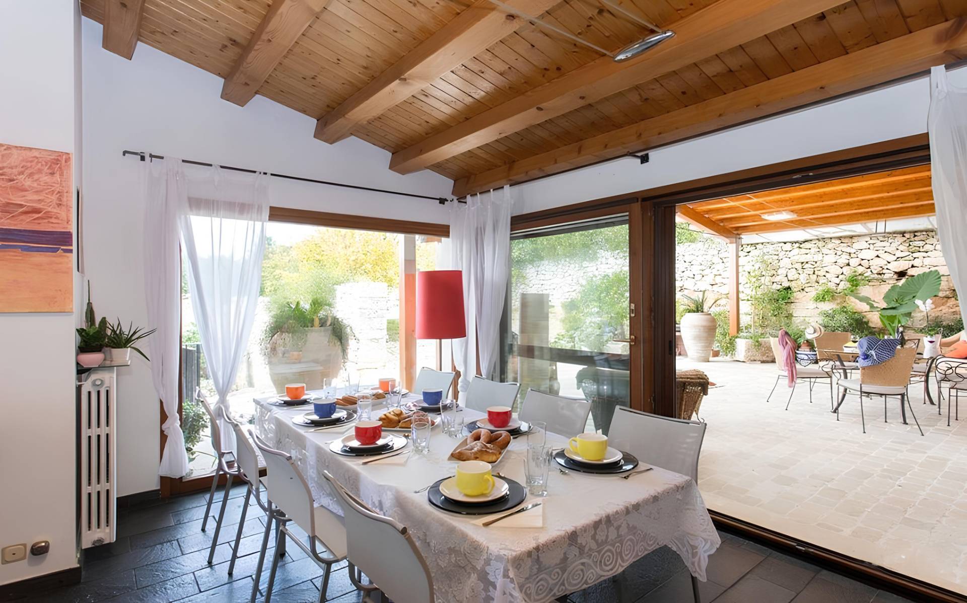 All' ingresso veniamo accolti da una grande veranda in legno, luogo ideale per trascorrere dei piacevoli pomeriggi a pieno contatto con la natura.