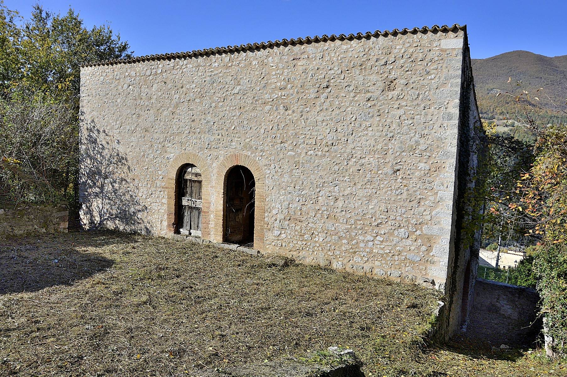 Valnerina, appena fuori il centro storico del caratteristico borgo di Vallo di Nera proponiamo in vendita casale singolo in pietra con giardino.