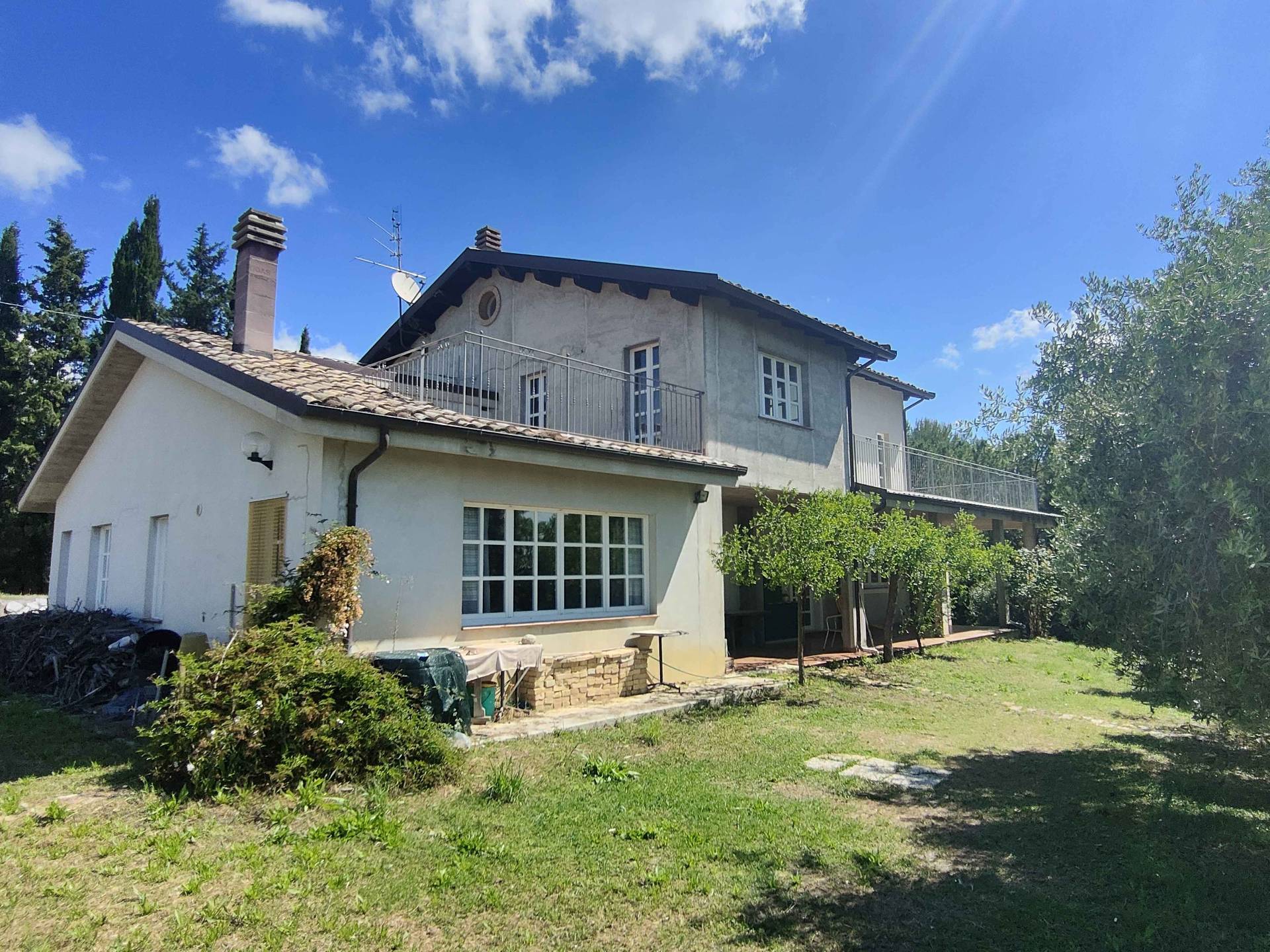 Questo splendido rustico/casale ristrutturato con cura e attenzione ai dettagli si trova "appollaitato" sulla cima di un poggio in posizione dominante e riservata allo stesso tempo, comodo da raggiungere, grazie all'accesso diretto da strada asfaltata che immette direttamente nel viale alberato di ingresso alla propriet.