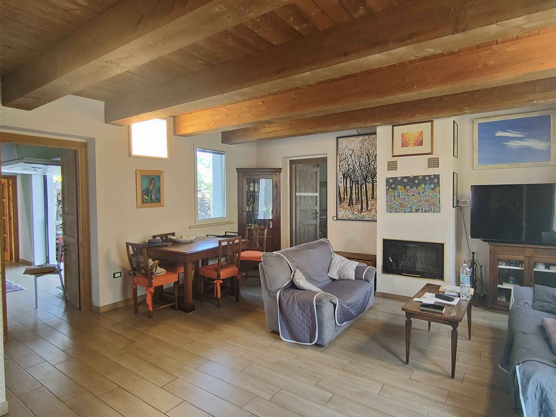 La casa di civile abitazione di circa mq 280 totali dislocata su due livelli cos composti: - piano terra completo di rustico/taverna con cucina e camino termico, garage provvisto di colonnina di ricarica per auto eletriche, dispensa/cantina e wc, oltre ad un locale ora adibito a sala relax con sauna finlandese; - primo piano completo di due camere da letto, soggiorno, cucina, due bagni e due balconi; all'occorrenza, eliminando la (seconda) cucina e l'ampio soggiorno/studio, con minimi adattamenti, si possono realizzare altre due o tre camere da letto per ospitare fino ad un massimo di 8/10 persone.