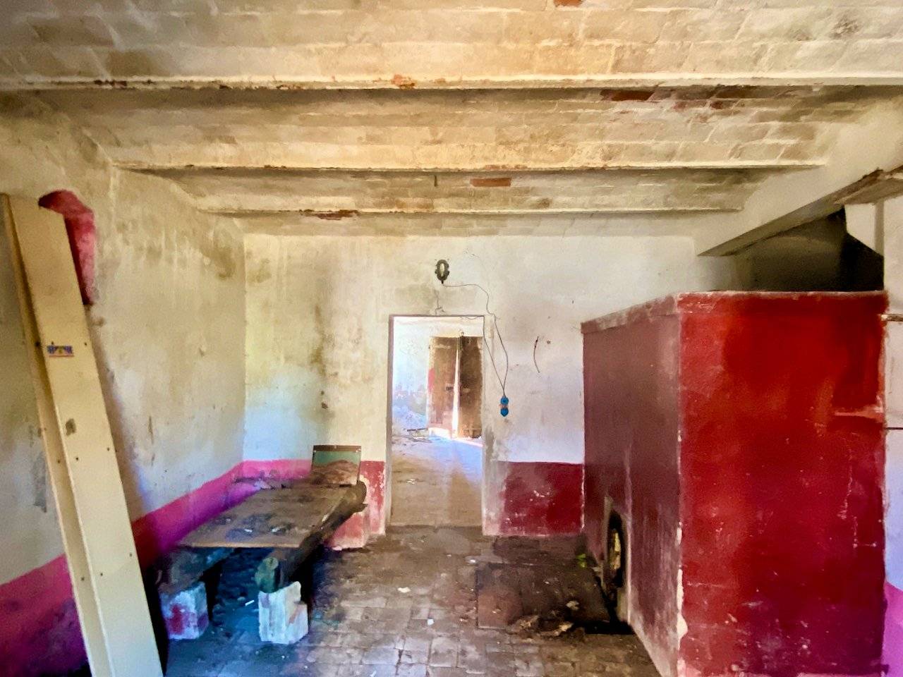 Ledificio principale di mq 230 composto al piano terra da unampia zona cantina, recuperabile, divisa in 4 locali.