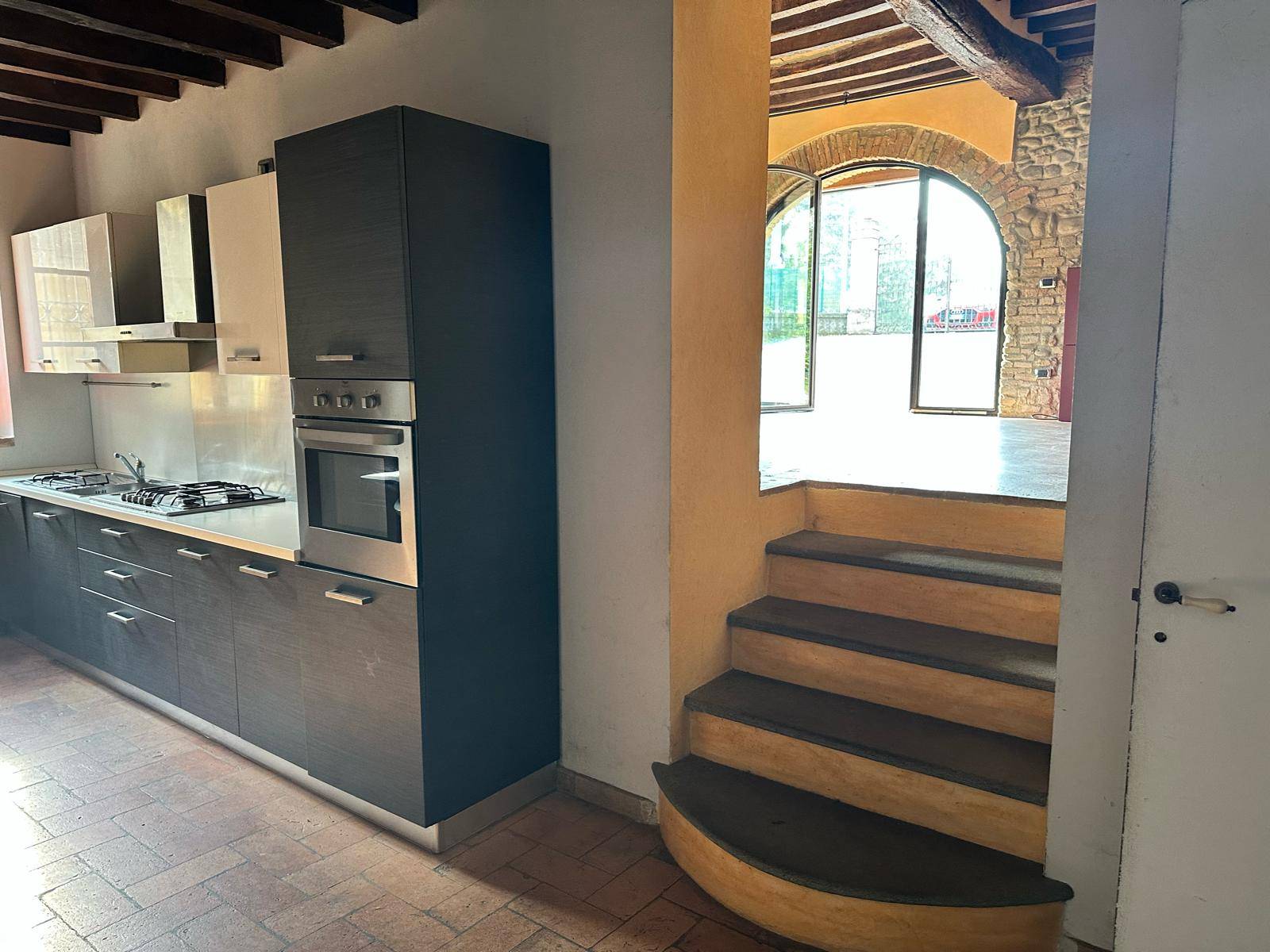 Rif 84 Parma, vicinanze Porporano, in zona verde e tranquilla proponiamo caratteristica porzione di rustico completamente ristrutturata, con travi a vista e pareti in sasso, disposta su due livelli, con annesso ampio giardino ad uso esclusivo ma non recintato.