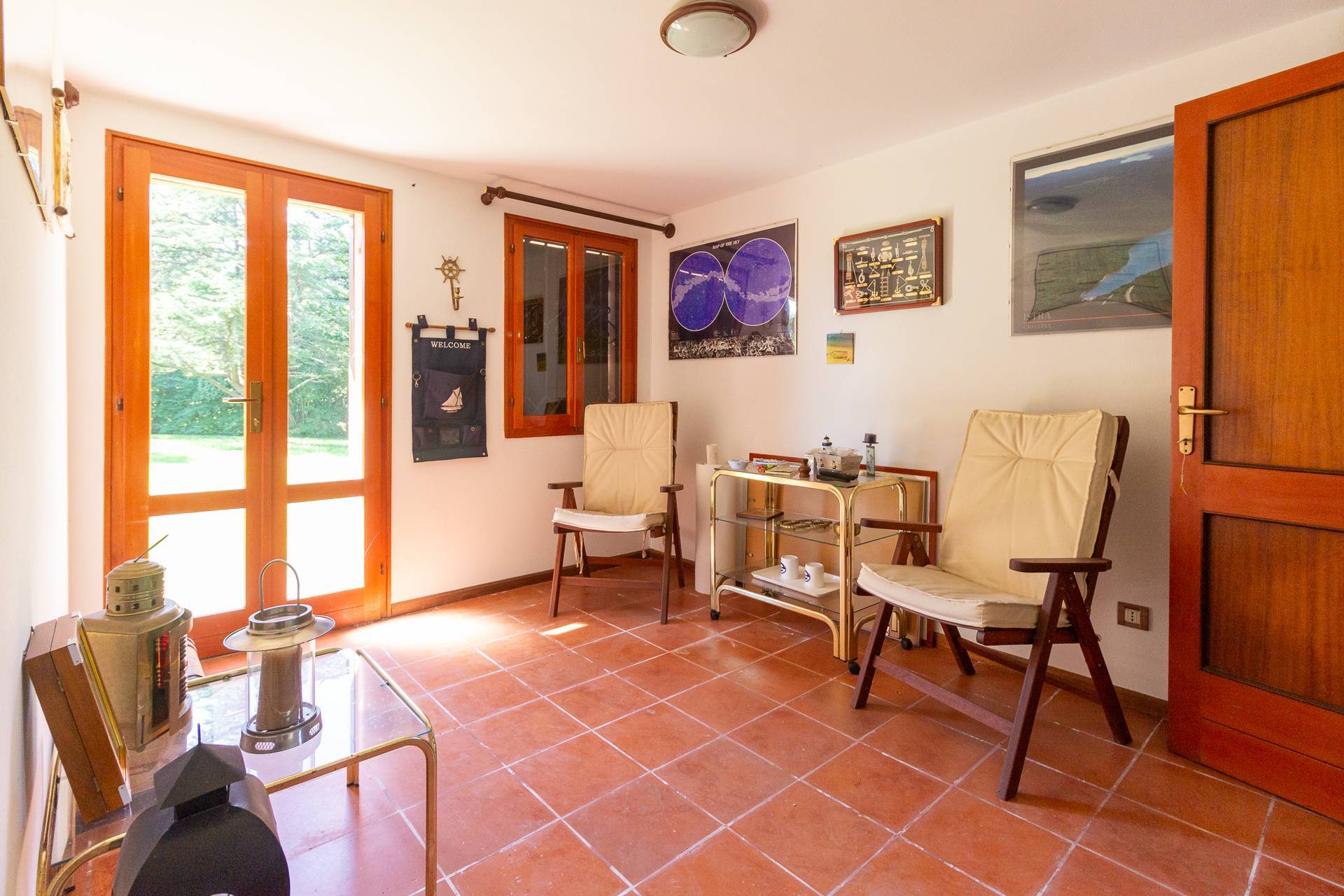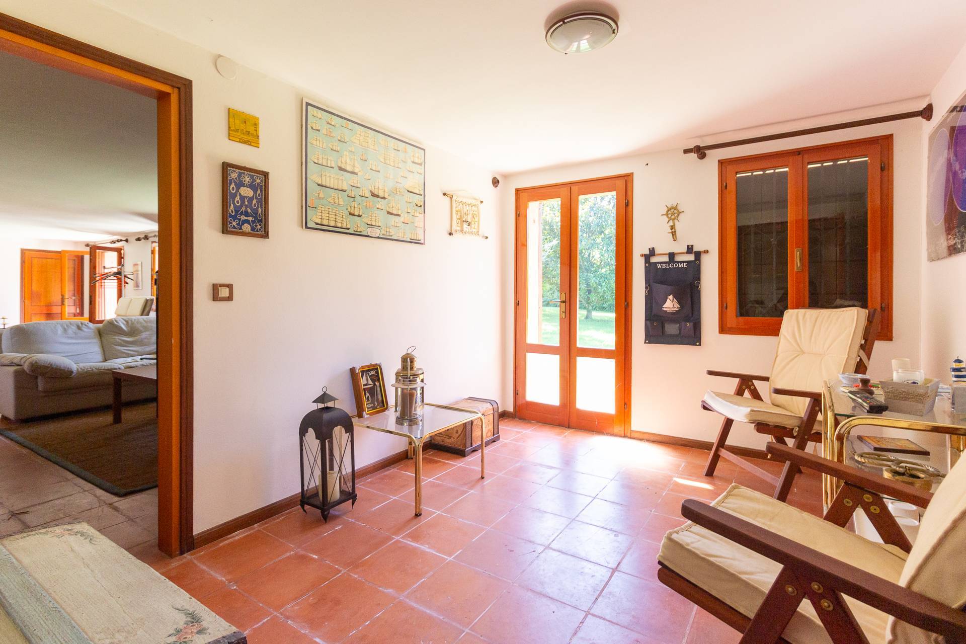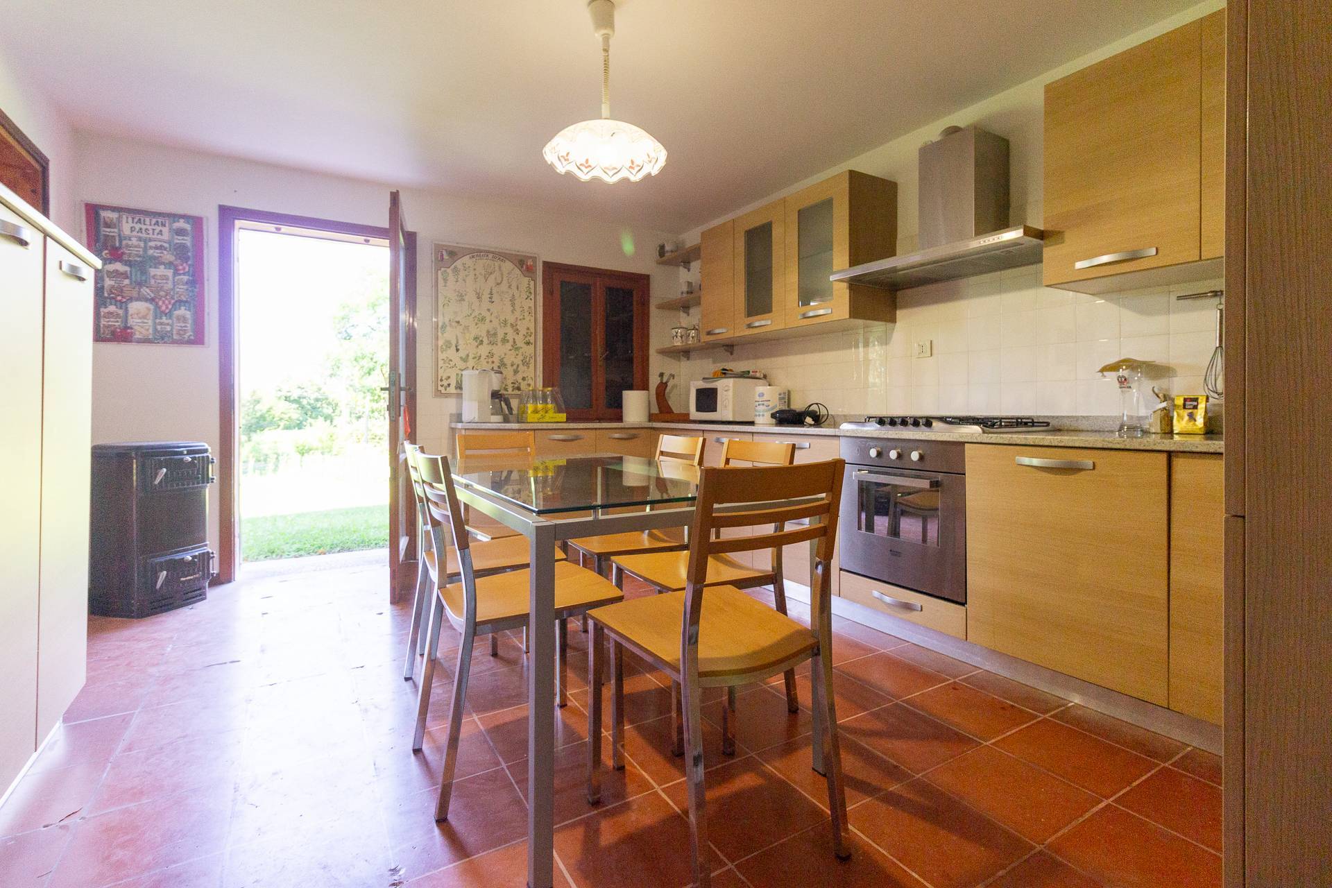 Situato al centro di uno splendido giardino di oltre 5000mq, con alberi d'alto fusto e numerosi alberi da frutto, questo splendido rustico ristrutturato su due piani ha una superficie complessiva di 200 mq ed composto da. PT ingresso/stanza, cucina abitabile di mq. 17 con adiacente sala da pranzo con caminetto di mq. 21 e soggiorno di mq. 37, 2 ripostigli, bagnetto; P1 3 camere matrimoniali , un bagno, 2 stanze pluriuso; Mansardina ad uso studio.