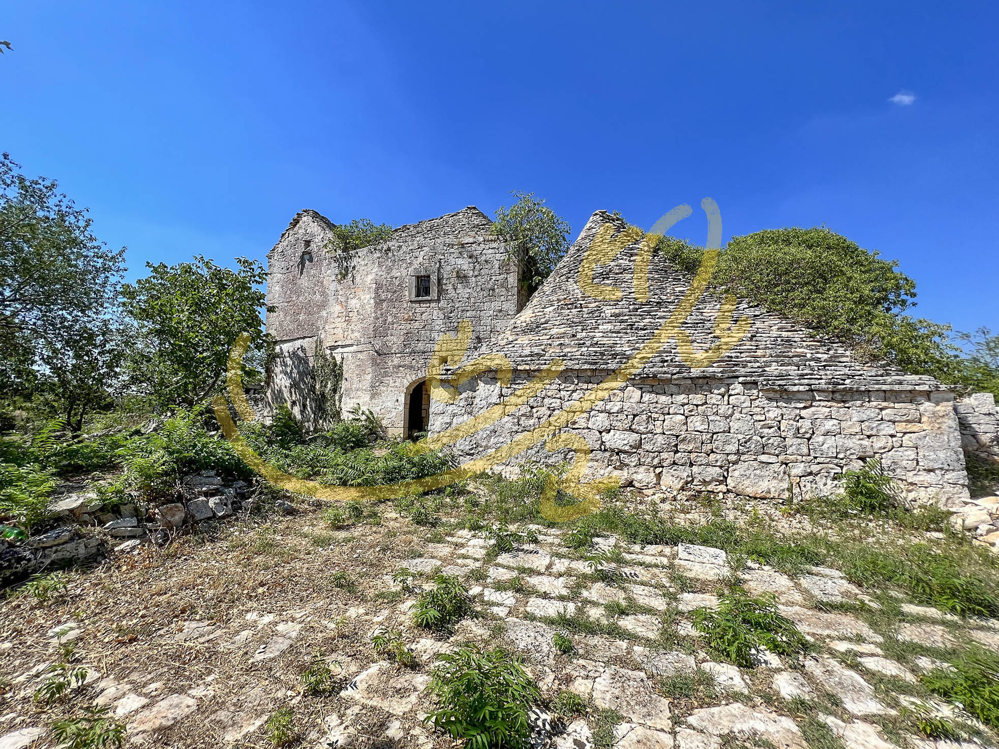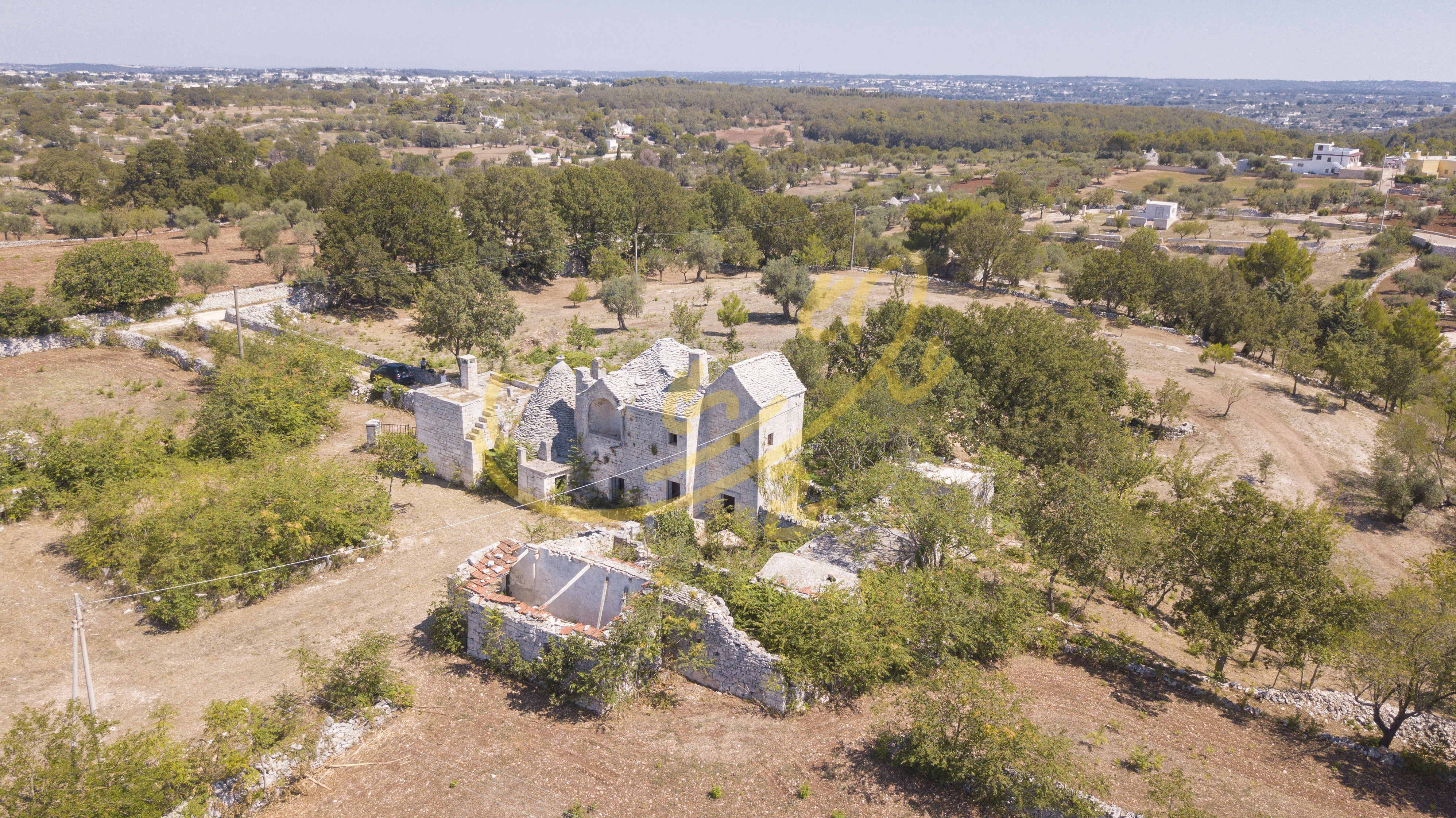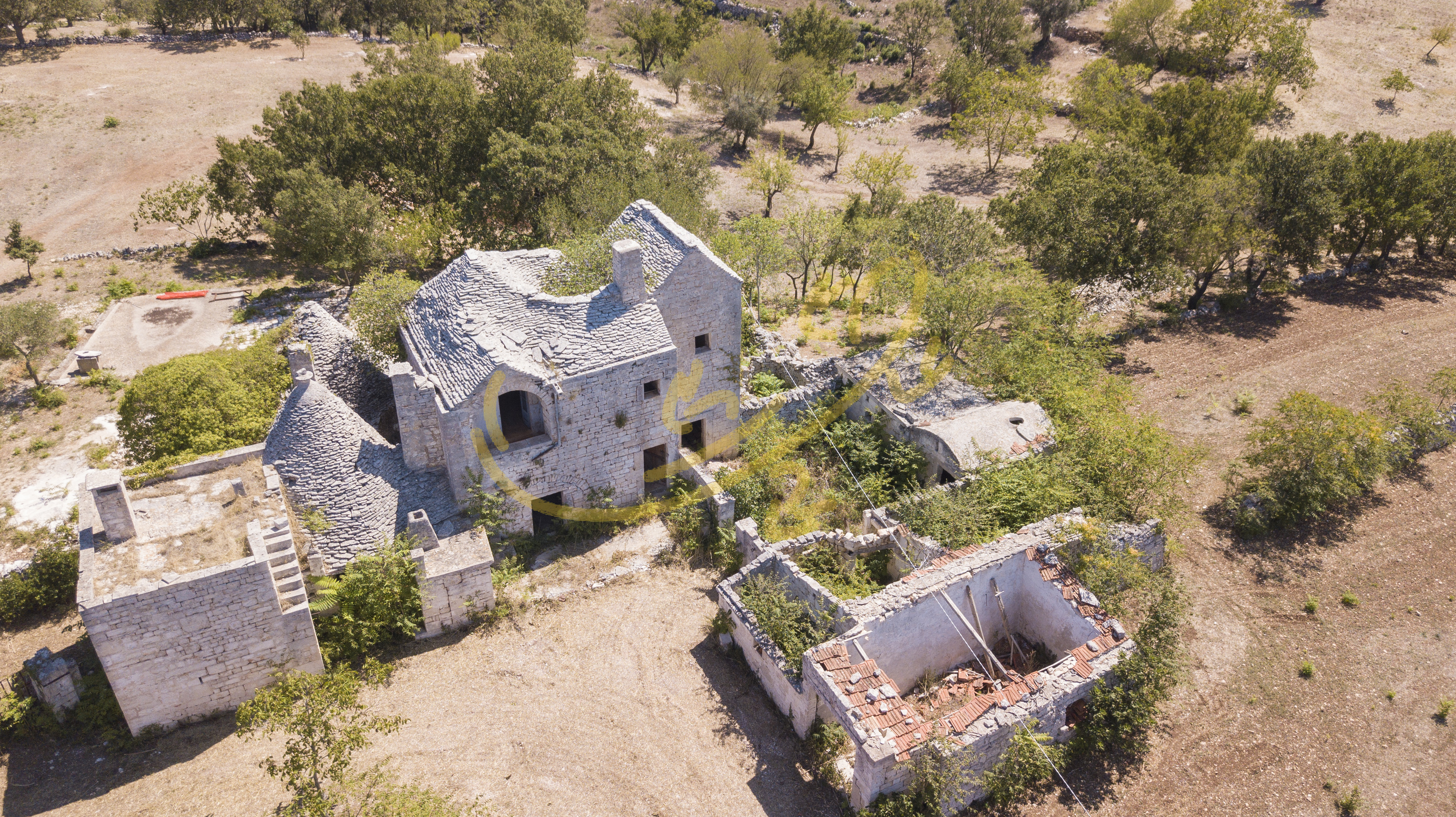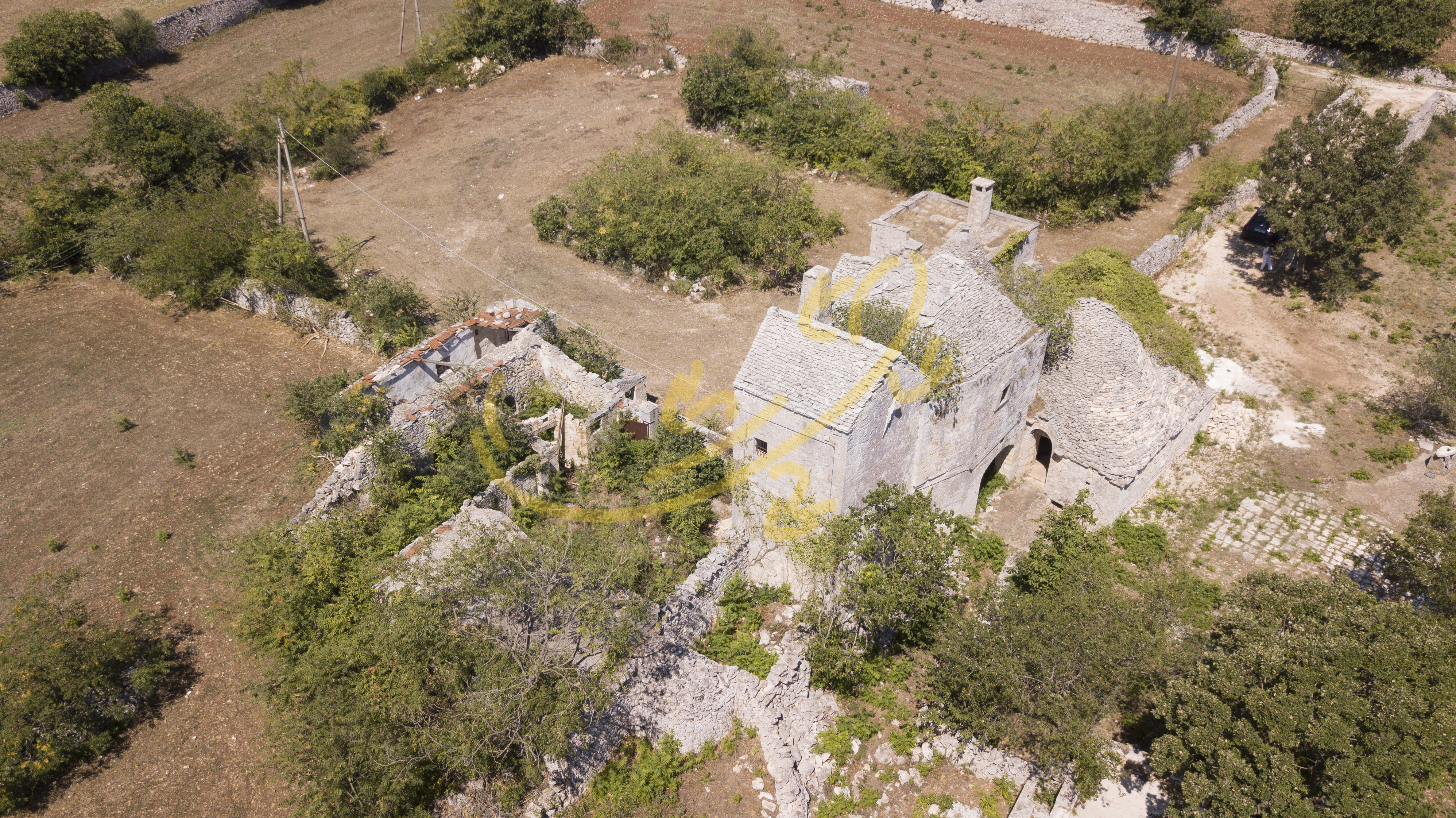 La propriet completamente da ristrutturare, si presenta con un corpo principale centrale disposto su due livelli, ed un secondo corpo, adiacente, con trulli cummerse, lamie e depositi.
