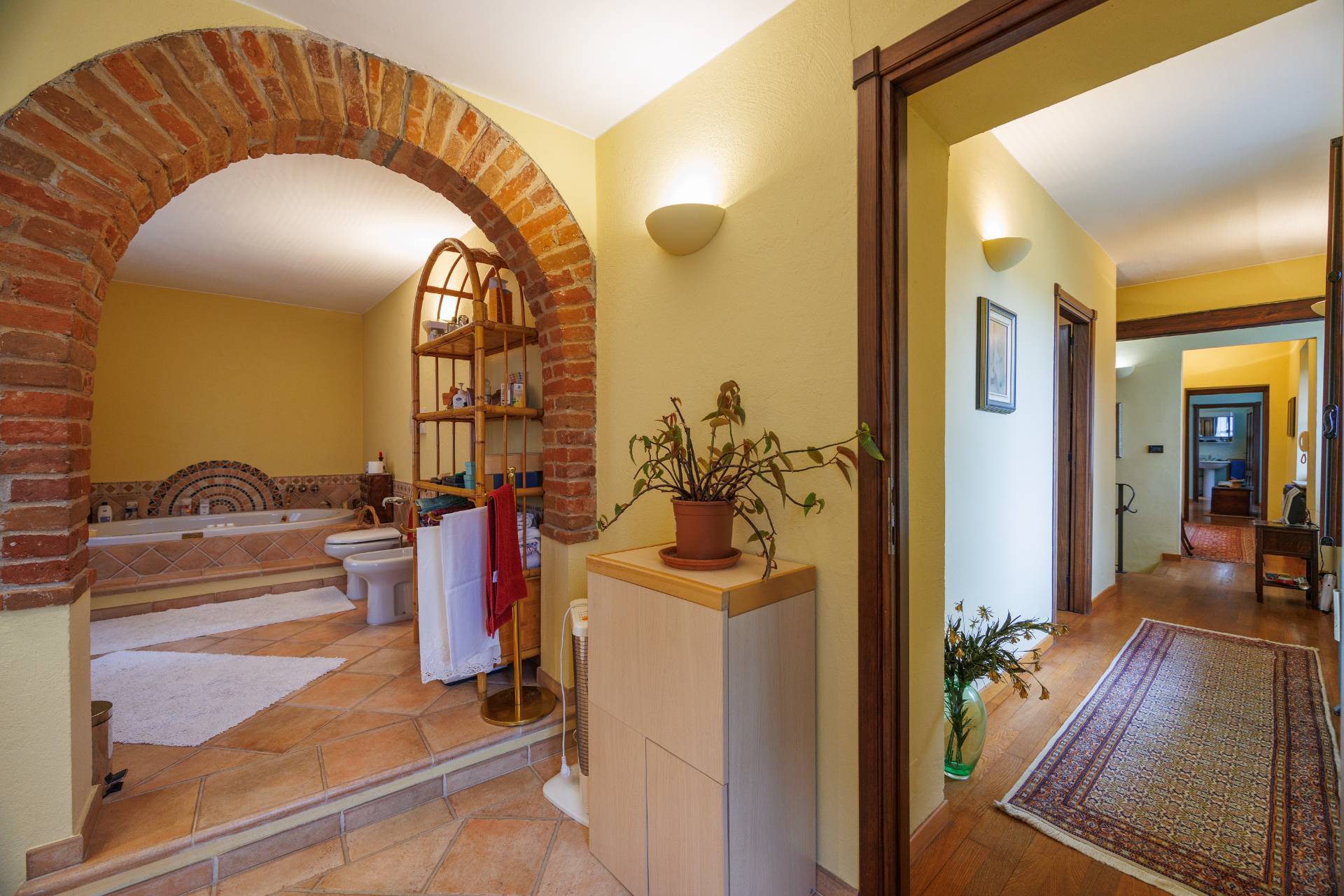 Al piano terra si trova una splendida tavernetta con soffitti a volta in mattoni a vista, un bagno e una cucina a servizio della zona esterna, ideale per pranzi e cene sotto il portico o a bordo piscina.