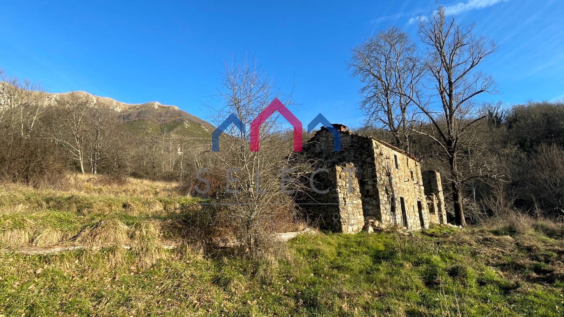 La propriet costituita da un casale edificato completamente in pietra facciavista su due piani, completamente da ristrutturare, adagiato a mezza costa e circondato da terreno esclusivo con alcuni ruderi di fabbricati ex rurali.