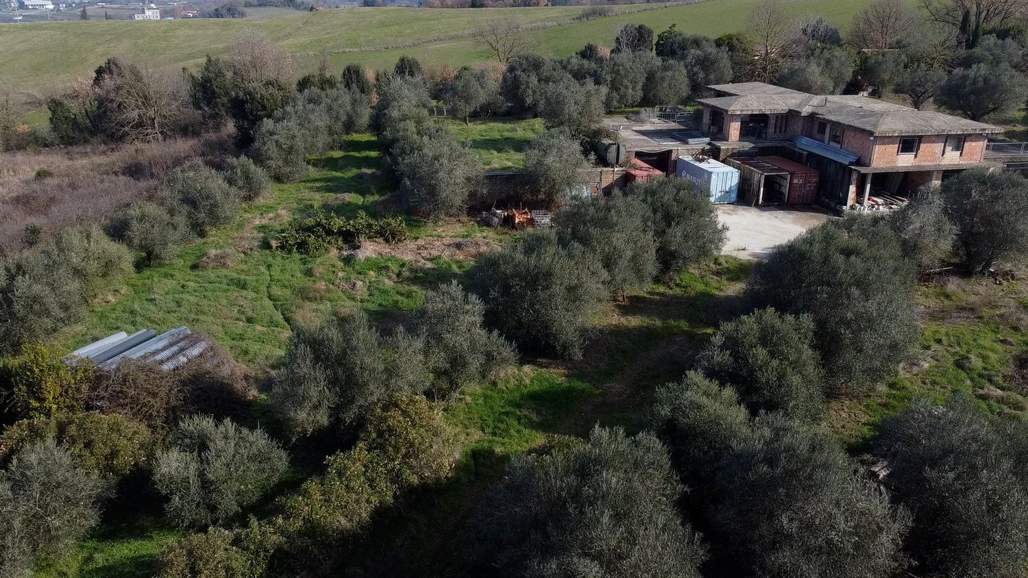 Completano la propriet due garage seminterrati di 50 mq ciascuno ed un terreno di un ettaro piantumato con ulivi con pozzo.