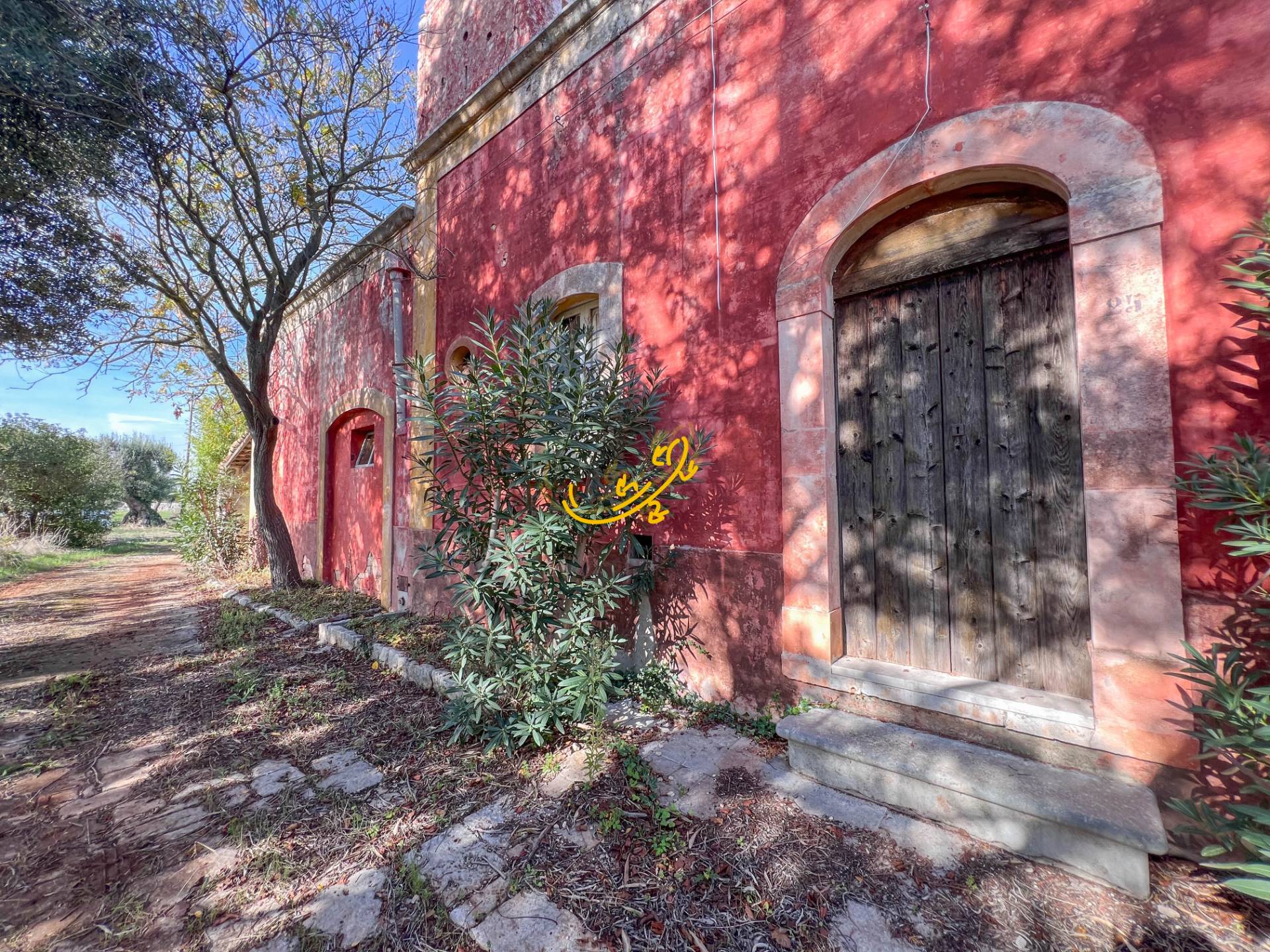 L'immobile offre ampie metrature, per un totale di circa 700 mq suddivisi tra il piano terra, di circa 500mq, e un seminterrato di circa 170 mq, interamente in pietra con volte a botte con altezze di 4 m. La propriet circondata da circa 6 ettari di terreno, dove sono presenti 600 alberi di ulivo e da frutto.