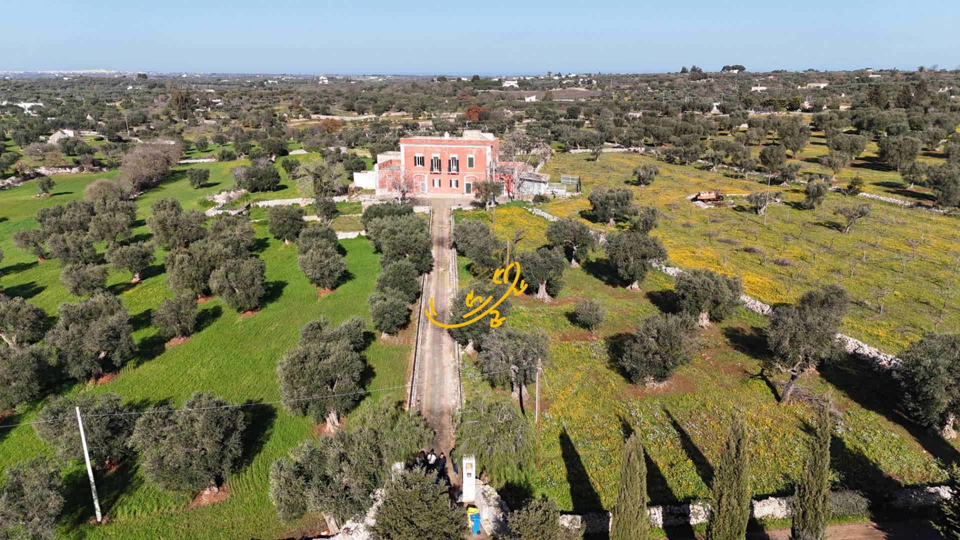 Un viale daccesso bordato di ulivi conduce alla propriet, anticipata da un piazzale in chianca originale.