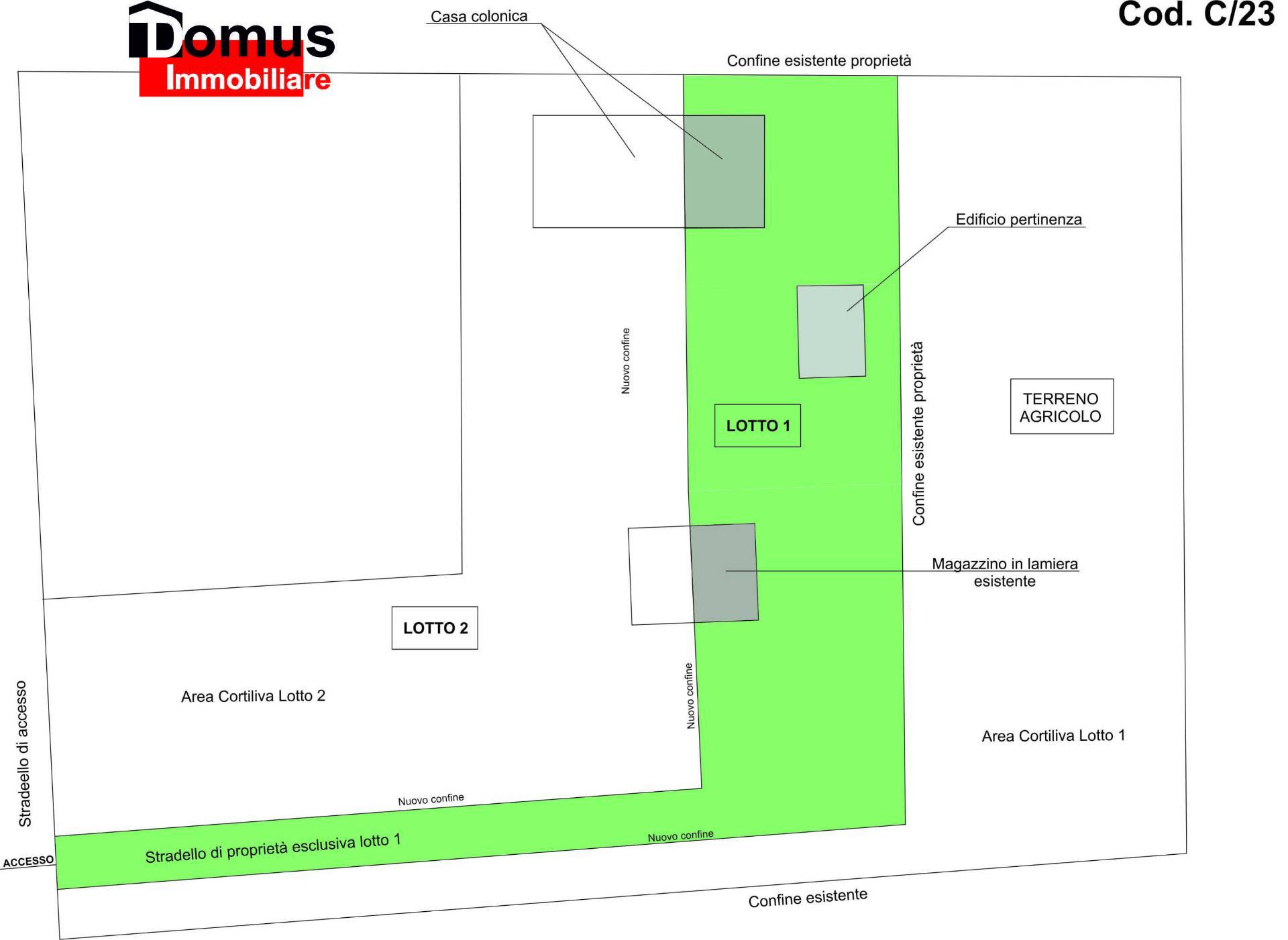 La propriet oggetto della vendita costituita da porzione indipendente su tre lati di mq. 240 circa dotata di viale di accesso privato ed area scoperta esclusiva di circa 3.000 mq, con spazi esterni idonei alla realizzazione di eventuale piscina.