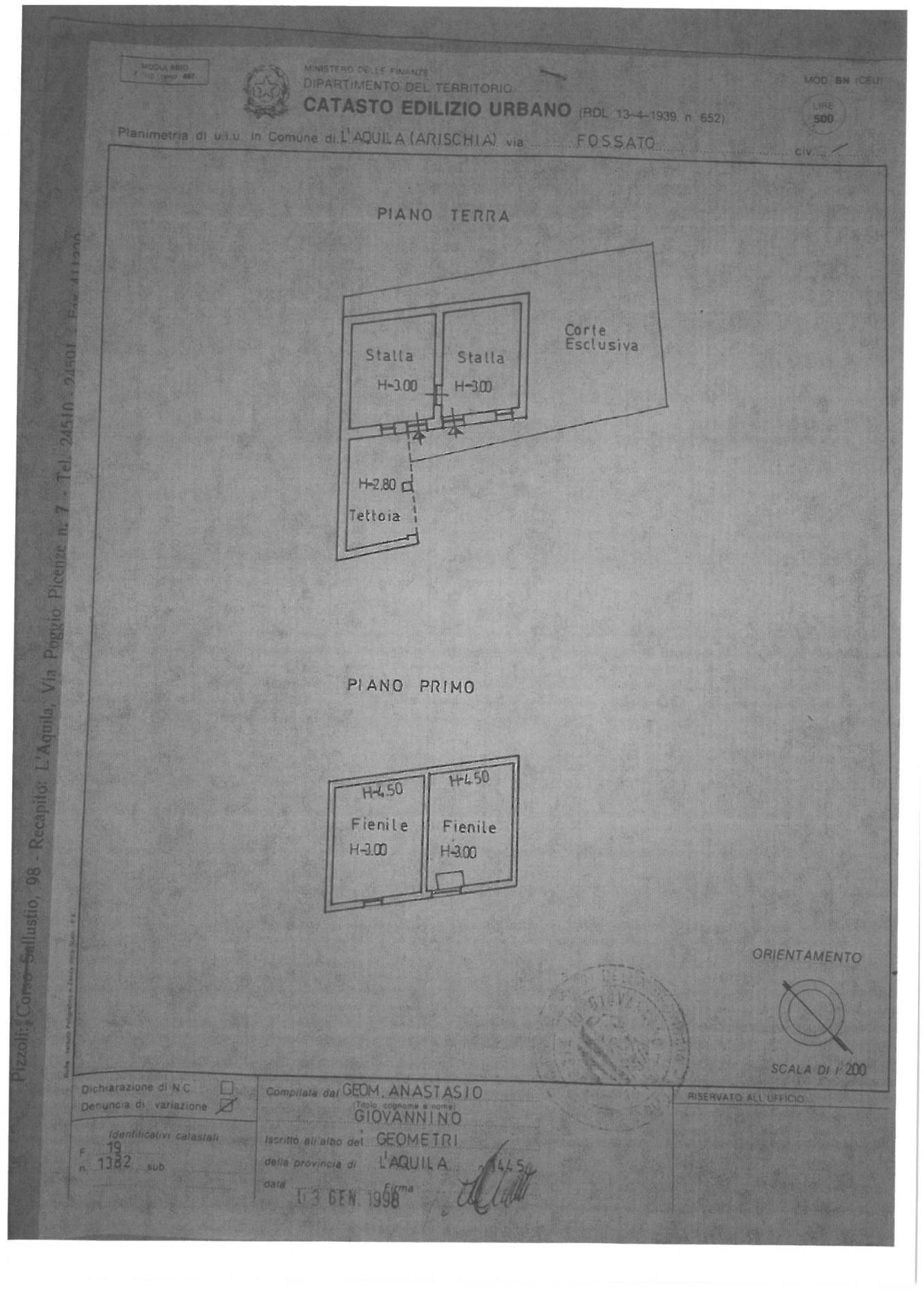FIENILE Propianiamo in vendita ad Arischia, frazione dell'Aquila, Un fienile con stalla e corte esclusiva.
