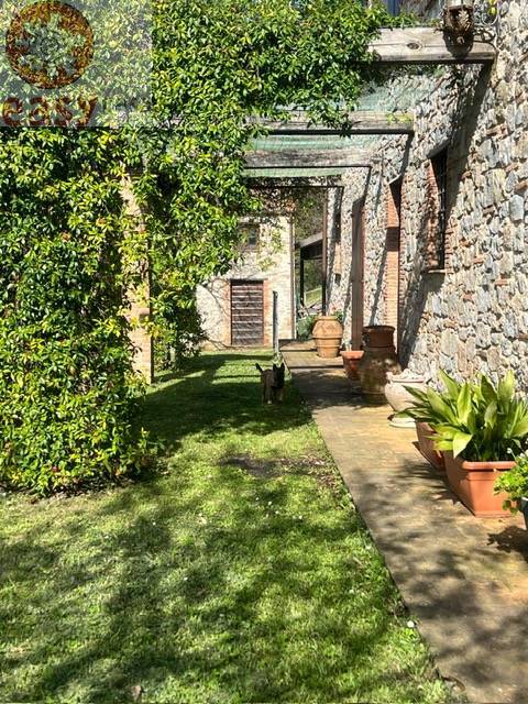 Completano la propriet un metato ristrutturato su due livelli al momento utilizzato come rimessa attrezzi ed una seconda unit distaccata di 30 mq gi dotata di impianto fognario ora utilizzata come magazzino . L'immobile stato oggetto di recente ristrutturazione ed cos composto: P.T Dal porticato/pergola centrale si accede allampio ingresso, e troviamo la cucina attrezzata in modo professionale, unampia dispensa o pranzo , due grandi saloni uno dei quali con camino angolare , bagno con doccia e ripostiglio sottoscala.