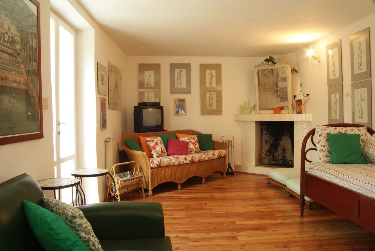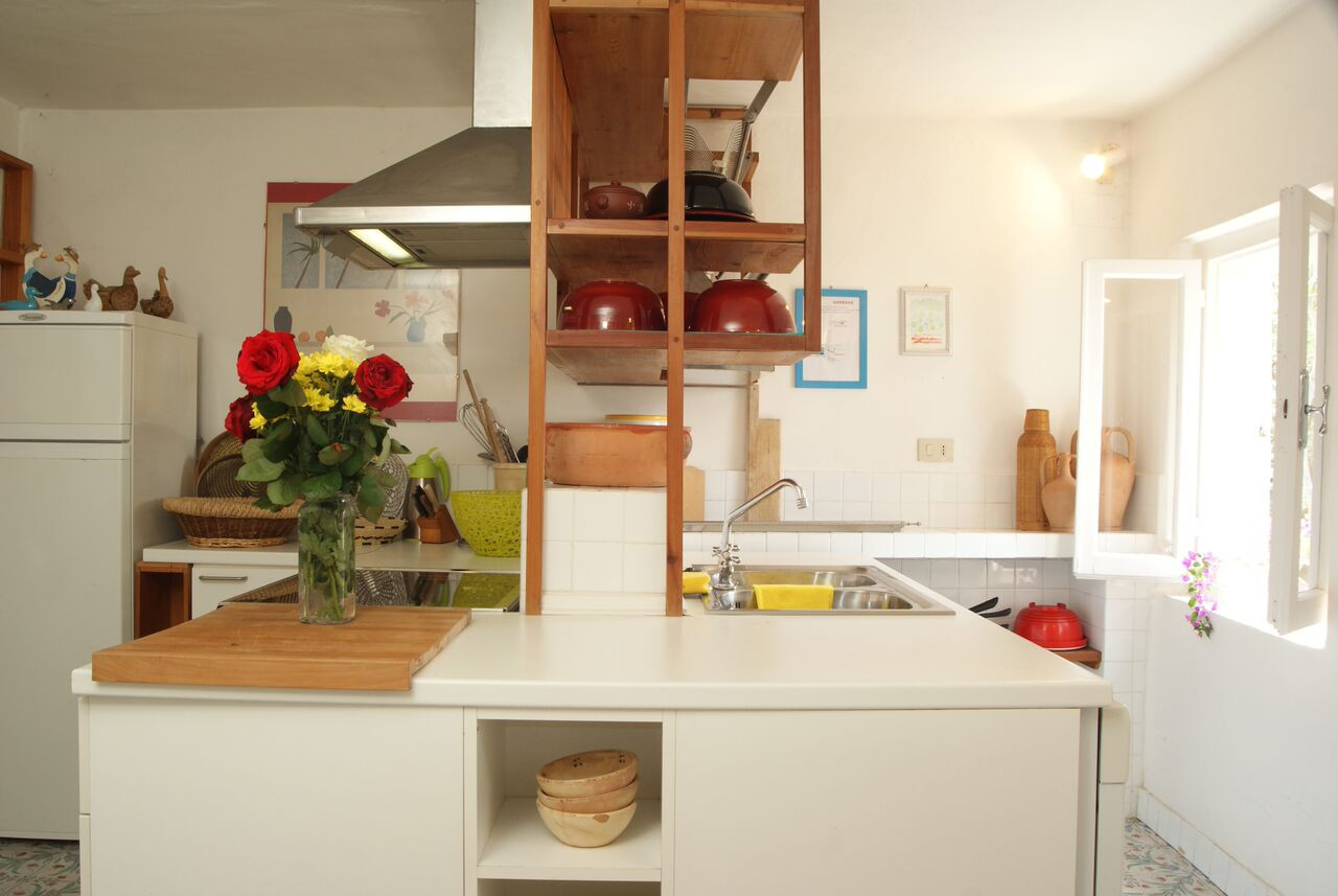 Al piano primo si trovano tre camere e due bagni; al piano sottostante, una camera-soggiorno resa insolita da uno sperone di roccia lasciato in vista, da' acceso al giardino.