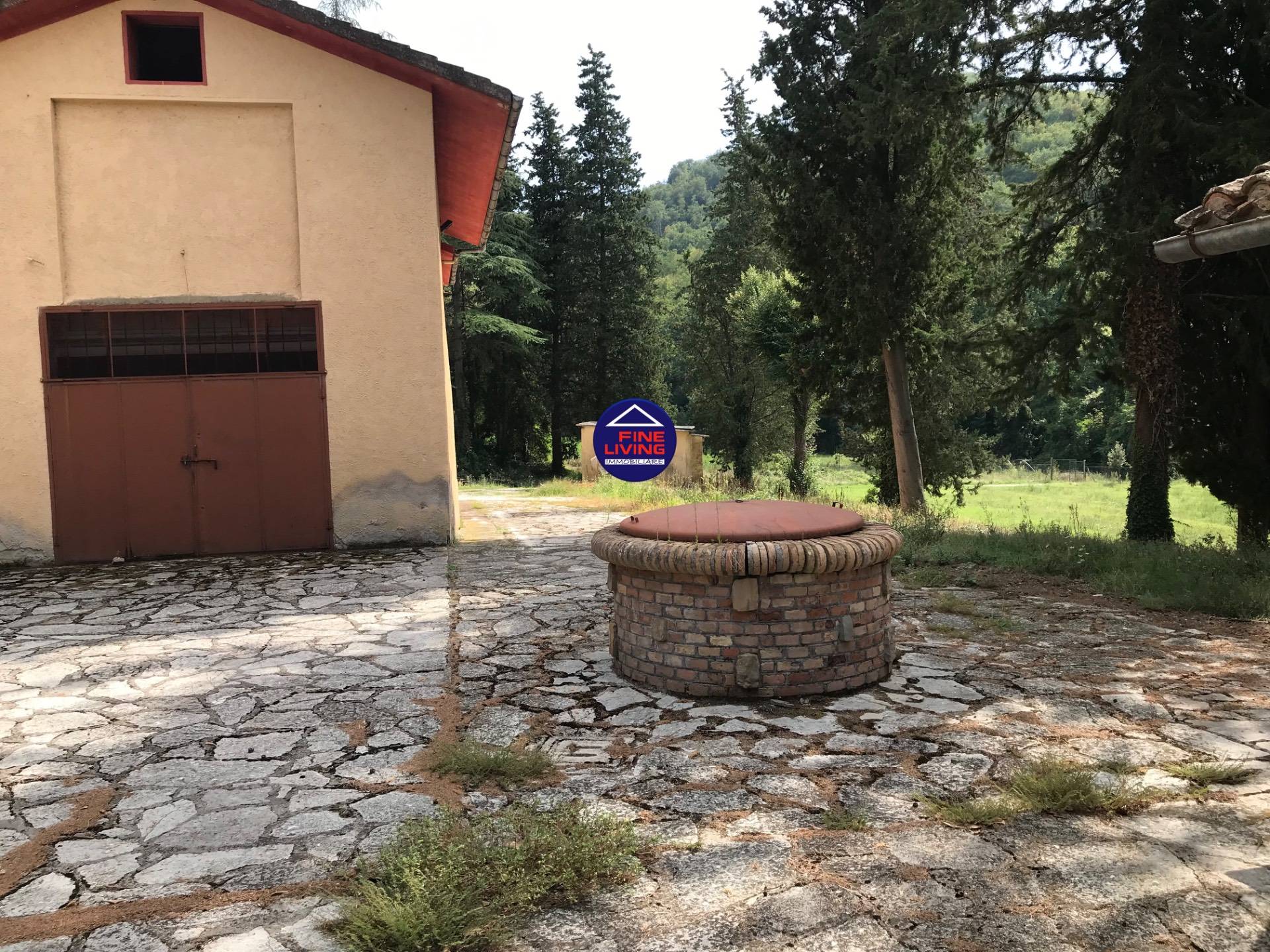 Il casolare circondato da ampio giardino, con spazio pianeggiante per poter realizzare piscina e da 13 ettari di terreni pianeggianti in gran parte coltivabili.