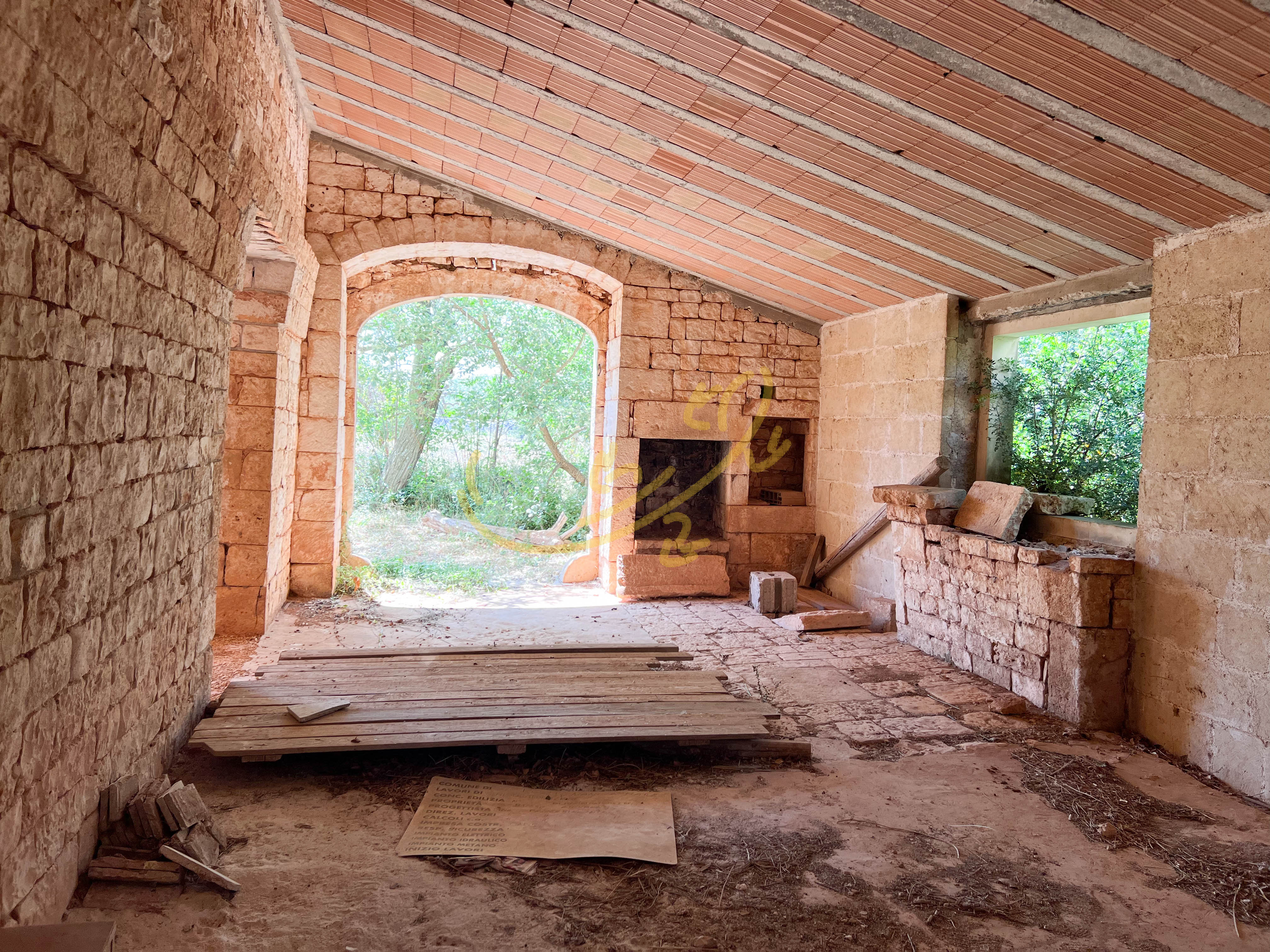 L'abitazione composta da 9 ambienti: il piano terra ha una superficie di circa 280 mq, presenta volte alte, ampie stanze e camino in pietra, mentre il piano primo, collegato tramite una scala interna, ha una superficie di circa 26 mq e d accesso al terrazzino con vista panoramica sulla campagna.