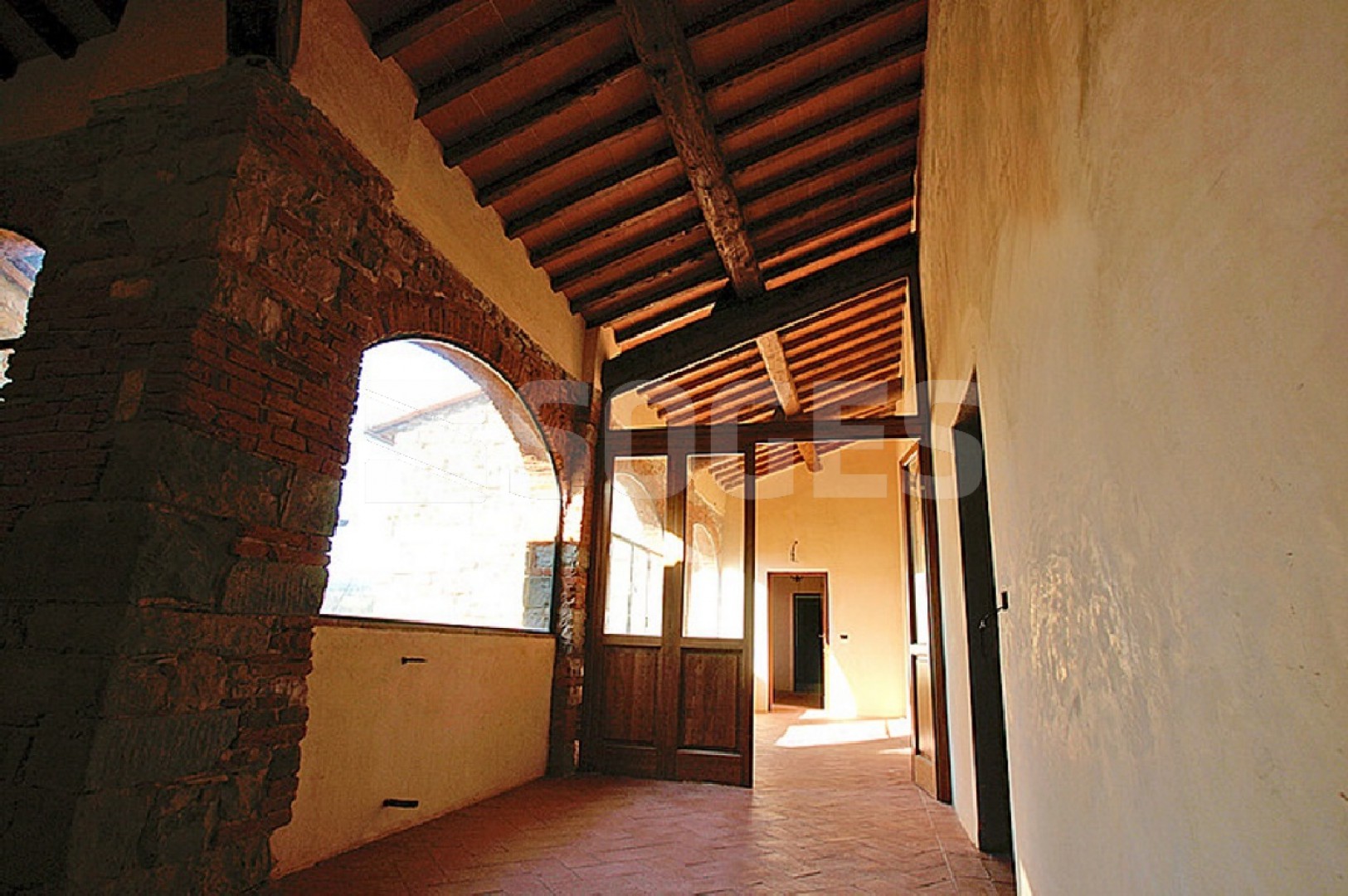 L'abitazione, di 600 mq oltre loggia di 26 mq, porticato di 32 mq e corte in pietra, composta da quattro bellissimi appartamenti, due per piano e gestibili sia in maniera indipendente che ricollegabili ed stata ristrutturata nel 2006. Il fienile di quasi 300 mq invece da ristrutturare ma posto sul lato pi panoramico e si presta ad una bellissima riqualificazione, anche per un secondo nucleo familiare, data la vicinanza alla colonica ma nella completa indipendenza.