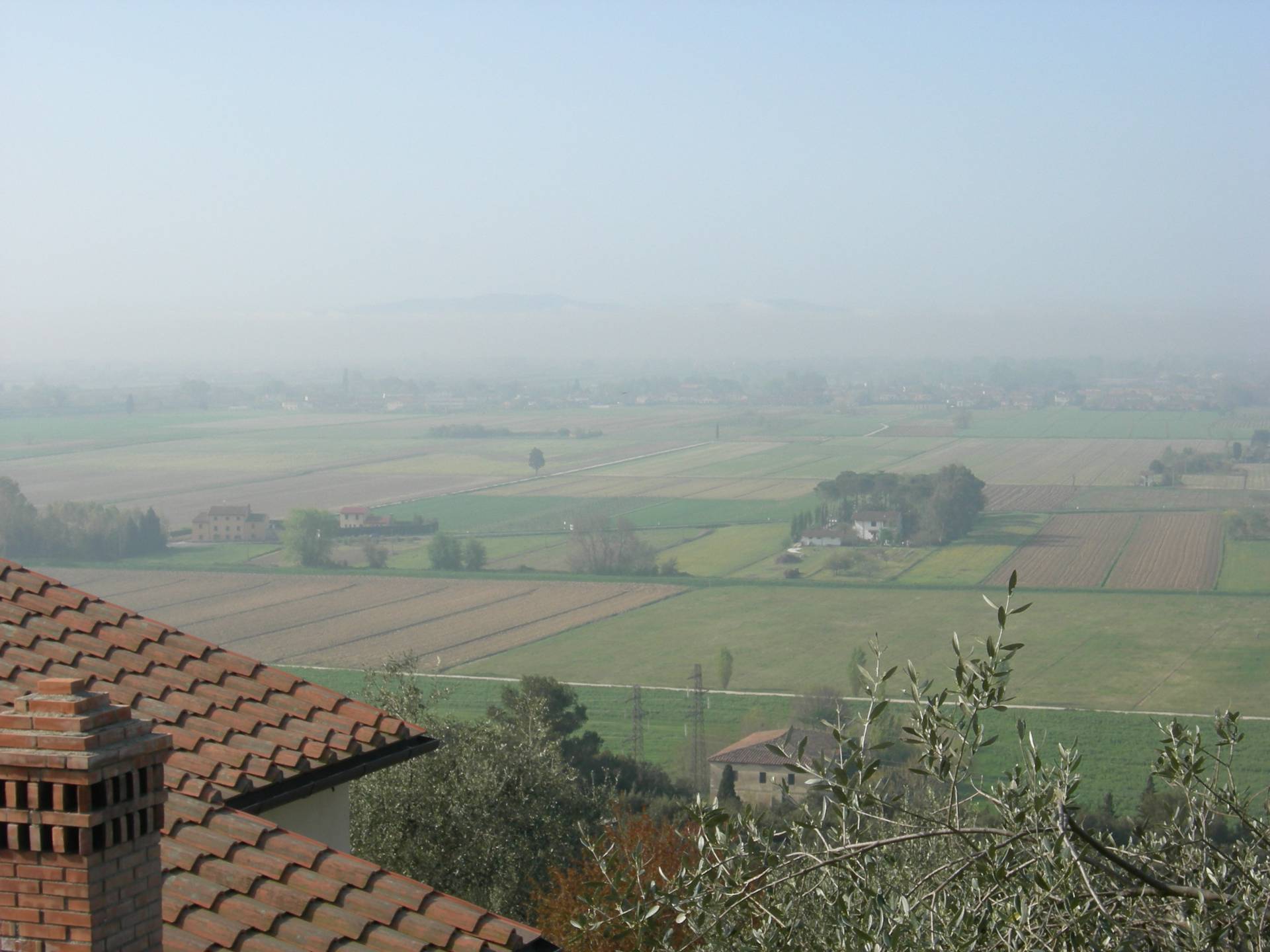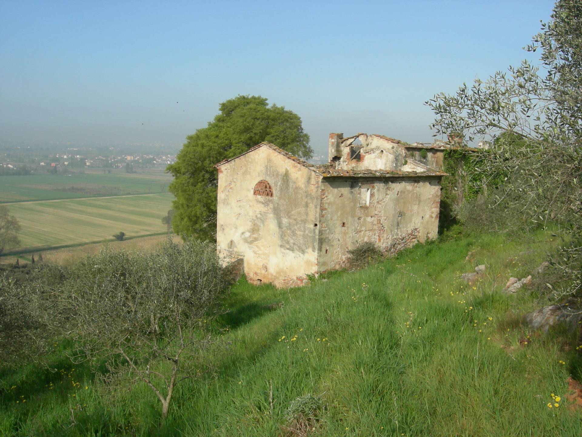 a pochi km da Pisa, in Agnano, zona collinare e panoramica, con vista su tutta la citt Pisa e con giornate limpide fino al mare di Livorno, proponiamo un PODERE costituito da 16 ettari di terreno coltivato in parte ad ulivi in produzione ed in parte a bosco con alberi secolari, corredato di ampia casa colonica di mq. 540 dislocata su tre piani completamente da ristrutturare e annesso di mq. 75 ristrutturato.