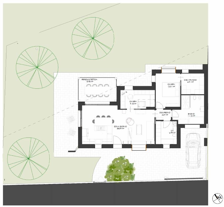 disponibile una bozza di progetto (realizzato da studio specializzato), che prevede la costruzione di un moderno villino su un unico livello, dotato di tutti i comfort attuali, con spazi interni ottimizzati e possibilit di personalizzazione.