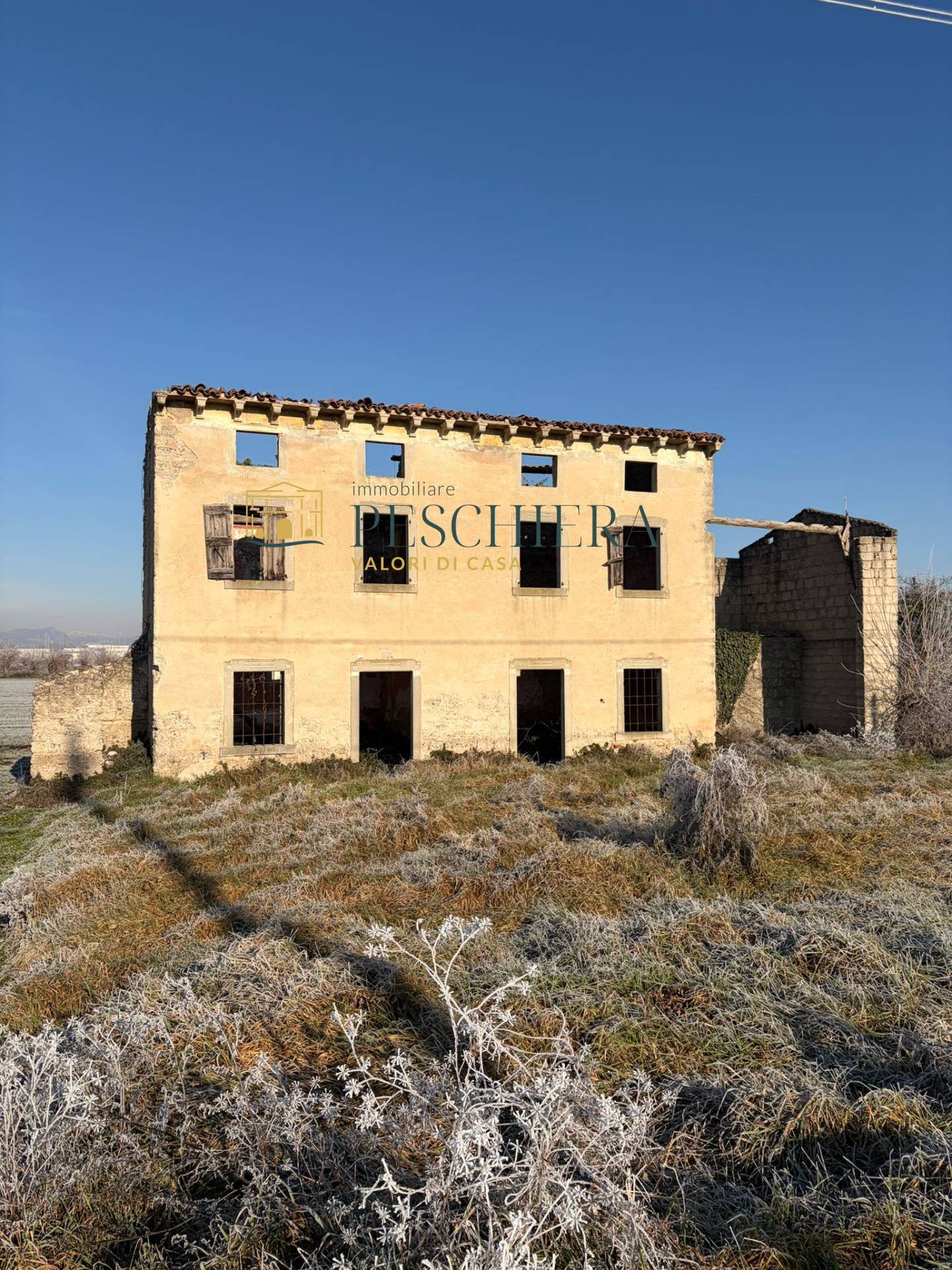 L'immobile, in precarie condizioni di manutenzione e con relativa area di pertinenza di 1900 mq, si sviluppa su tre livelli.