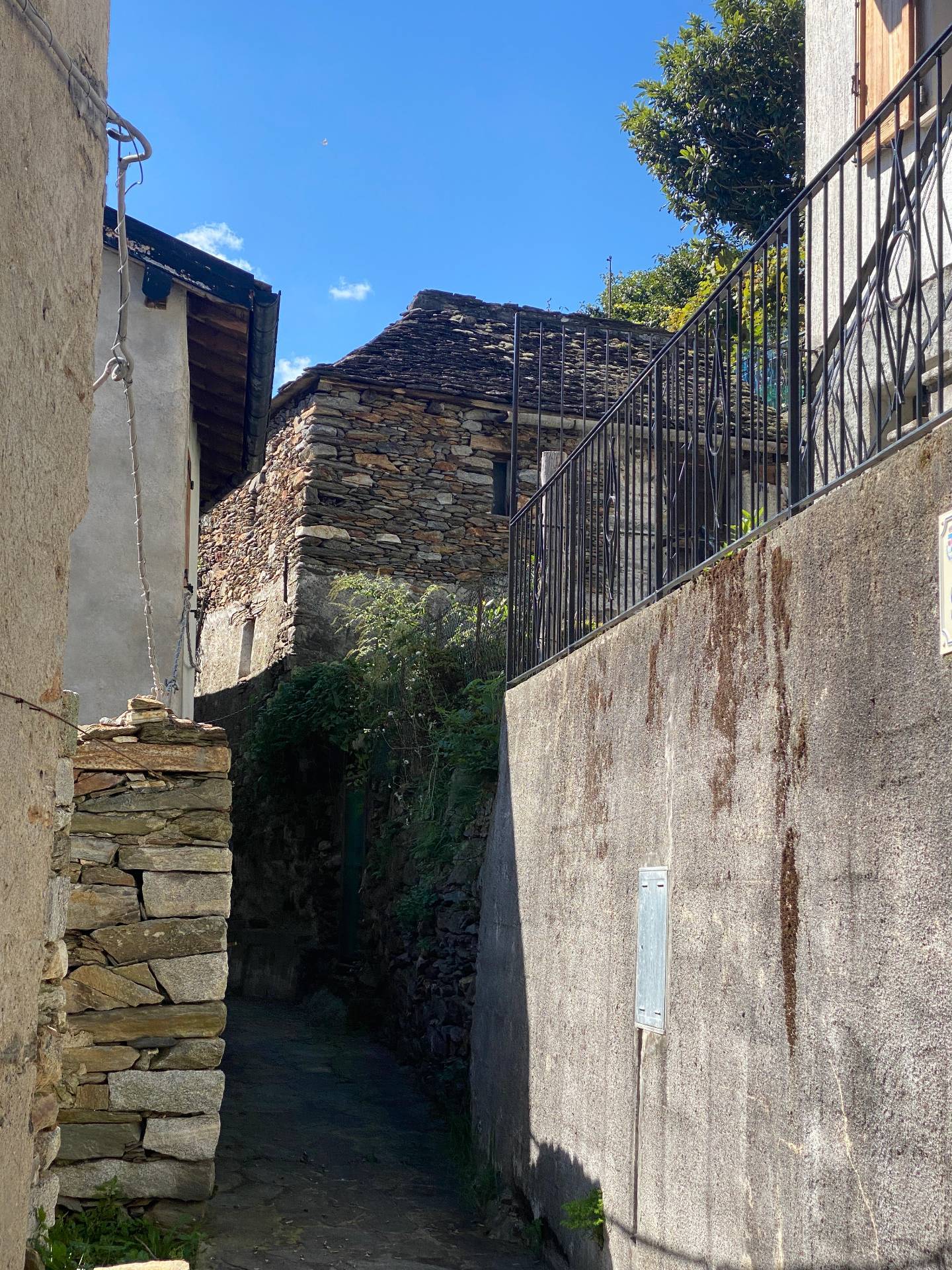 Questo fabbricato, in sasso a vista e ancora con il tetto in piode, dispone di due livelli: al primo piano si trova un locale giorno con travi a vista e pavimenti in legno; il piano terra allo stato grezzo, da ristrutturare.