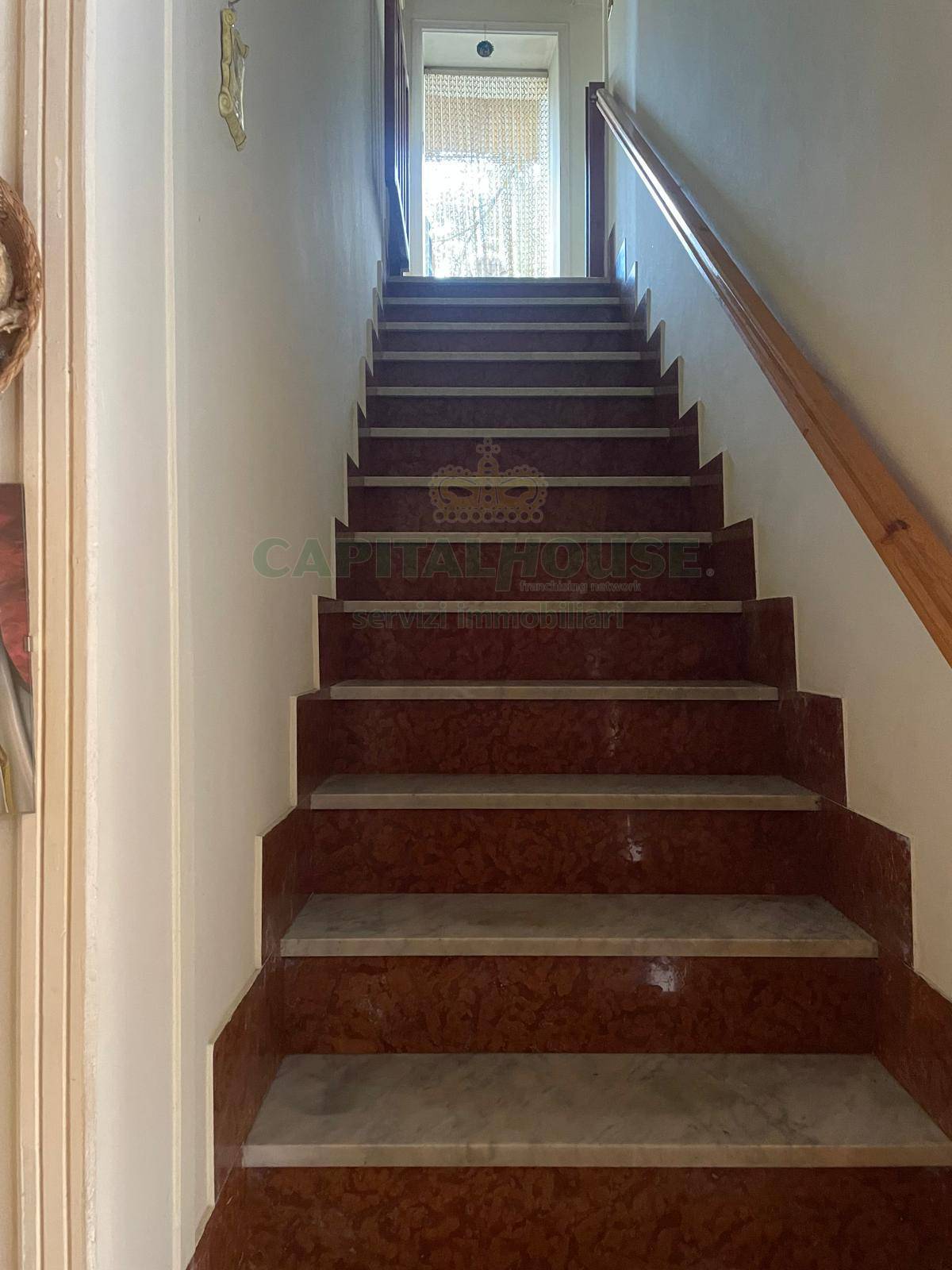 La soluzione si sviluppa al primo piano, raggiungibile mediante una rampa di scale.