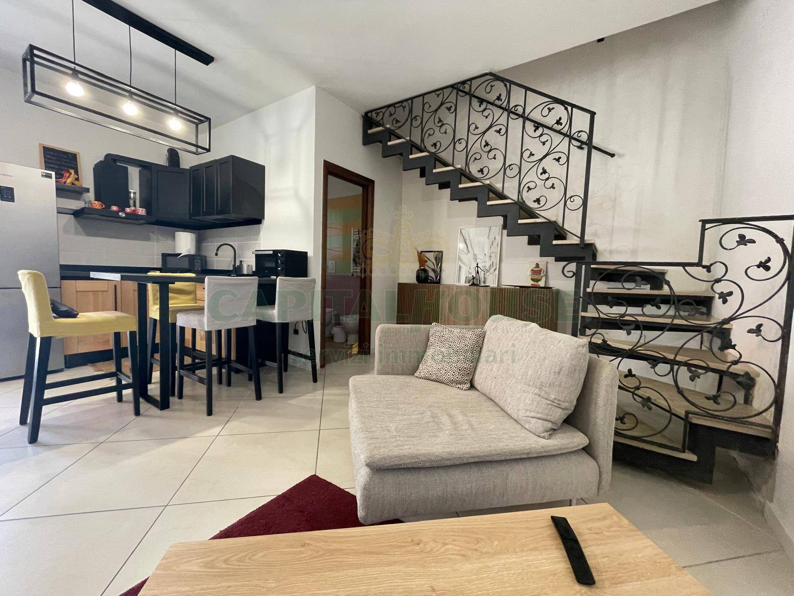 Limmobile si sviluppa su due livelli: ° Piano Terra: accogliente zona giorno open space con ampio salone living e angolo cottura, bagno/lavanderia e una splendida scala in ferro battuto e marmo che dona carattere e raffinatezza agli ambienti.