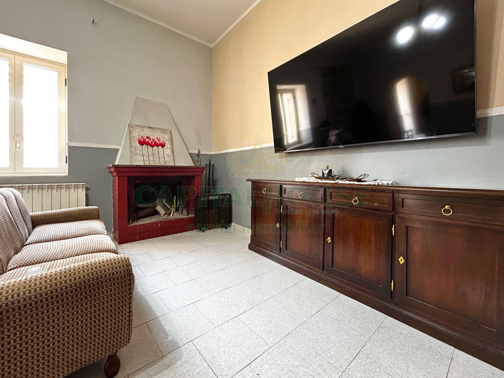 Casa semi indipendente di 135 mq Continua a leggere! E in vendita a San Paolo Belsito, nei pressi del comune, una casa semi indipendente posta allinterno di un cortile condiviso che sviluppa una metratura complessiva di circa 135 mq. La casa si sviluppa su due livelli ed composta da: piano rialzato con cucina abitabile, soggiorno con camino, bagno e lavanderia.