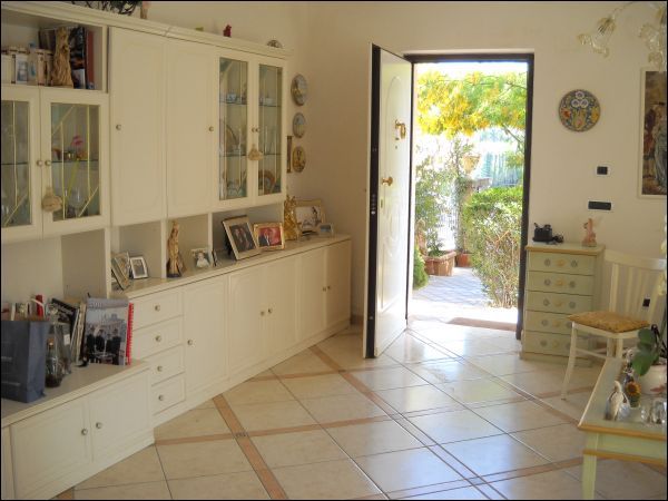 Folignano, Piane di Morro, villetta a schiera di mq 210 cosl disposta: al piano terra ingresso/soggiorno e bagno, cucina abitabile con porta finestra con accesso sul giardino; al piano primo camera matrimoniale con bagno interno e terrazzo, due camere singole e bagno, sottotetto; al piano seminterrato rustico o garage, camera, bagno e cantina.