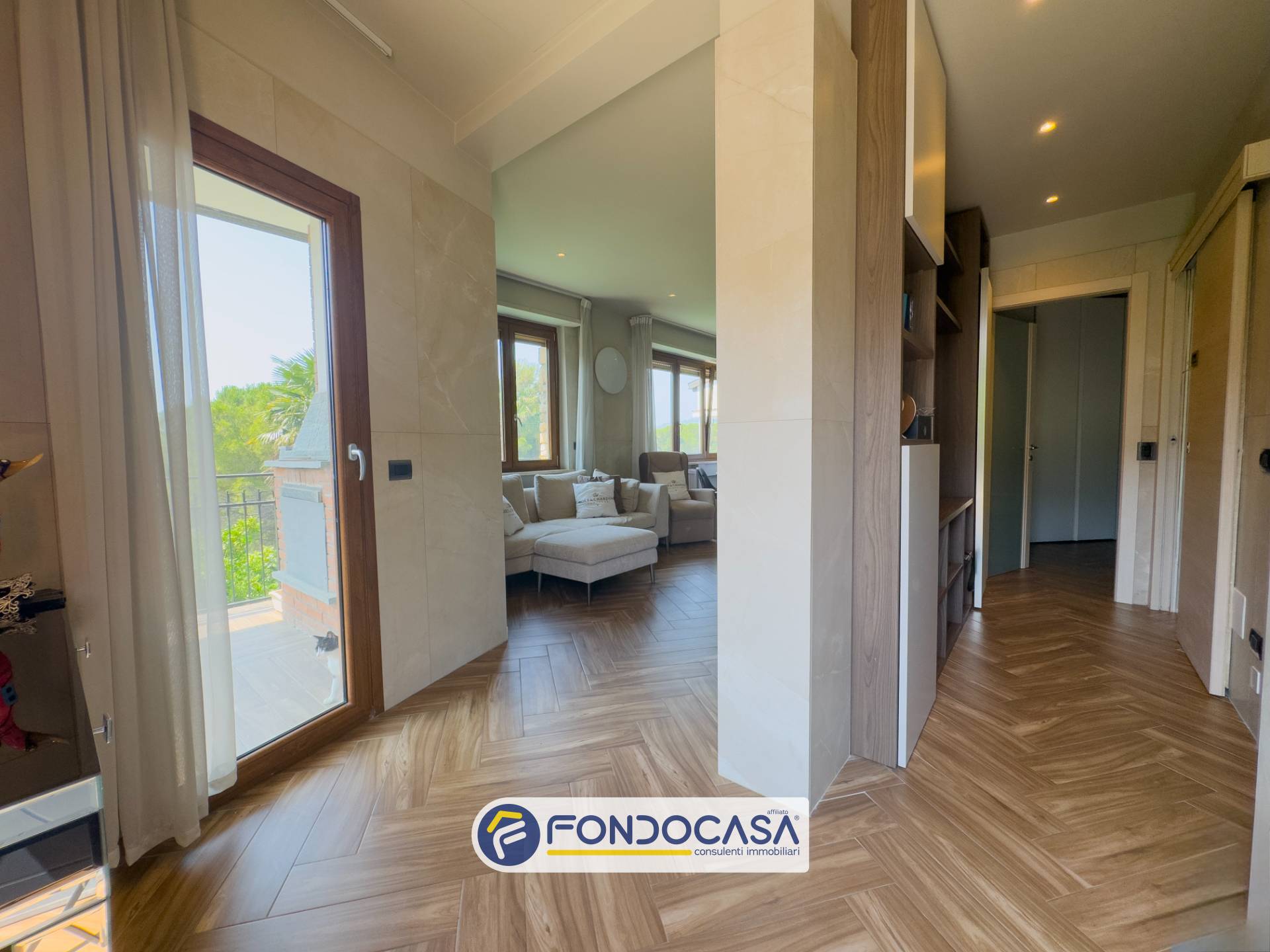 APPARTAMENTO IN VILLA CON GIARDINO!! Nella prestigiosa collina di Pinamare, immersa nel verde e nella tranquillit, proponiamo in vendita una porzione di villa finemente ristrutturata, ideale per chi desidera vivere in un contesto esclusivo a pochi minuti dal mare. Lappartamento ubicato al primo piano e si presenta come un elegante trilocale, completamente ristrutturato con finiture di pregio e dotato di split per l'aria condizionata.