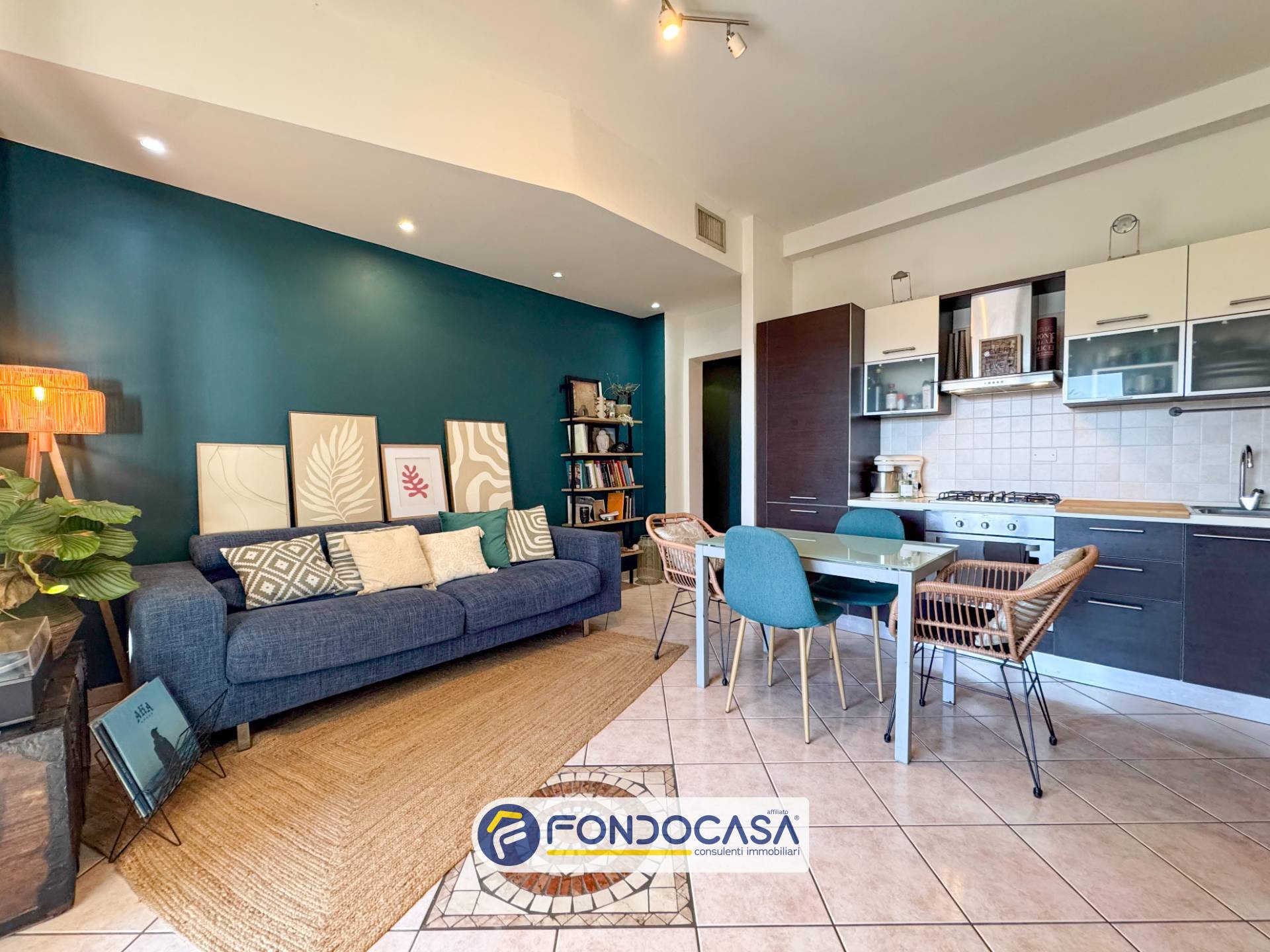 Lingresso principale conduce a una luminosa e spaziosa zona giorno, caratterizzata da grandi aperture che esaltano la luce naturale e laffaccio aperto verso il mare. La cucina a vista si integra perfettamente con lambiente living, creando uno spazio conviviale e pratico, con accesso diretto al terrazzo vivibile, ideale per pranzi allaperto, cene estive e momenti di relax con vista mare. La zona notte composta da due camere da letto e da un bagno finestrato con doccia.