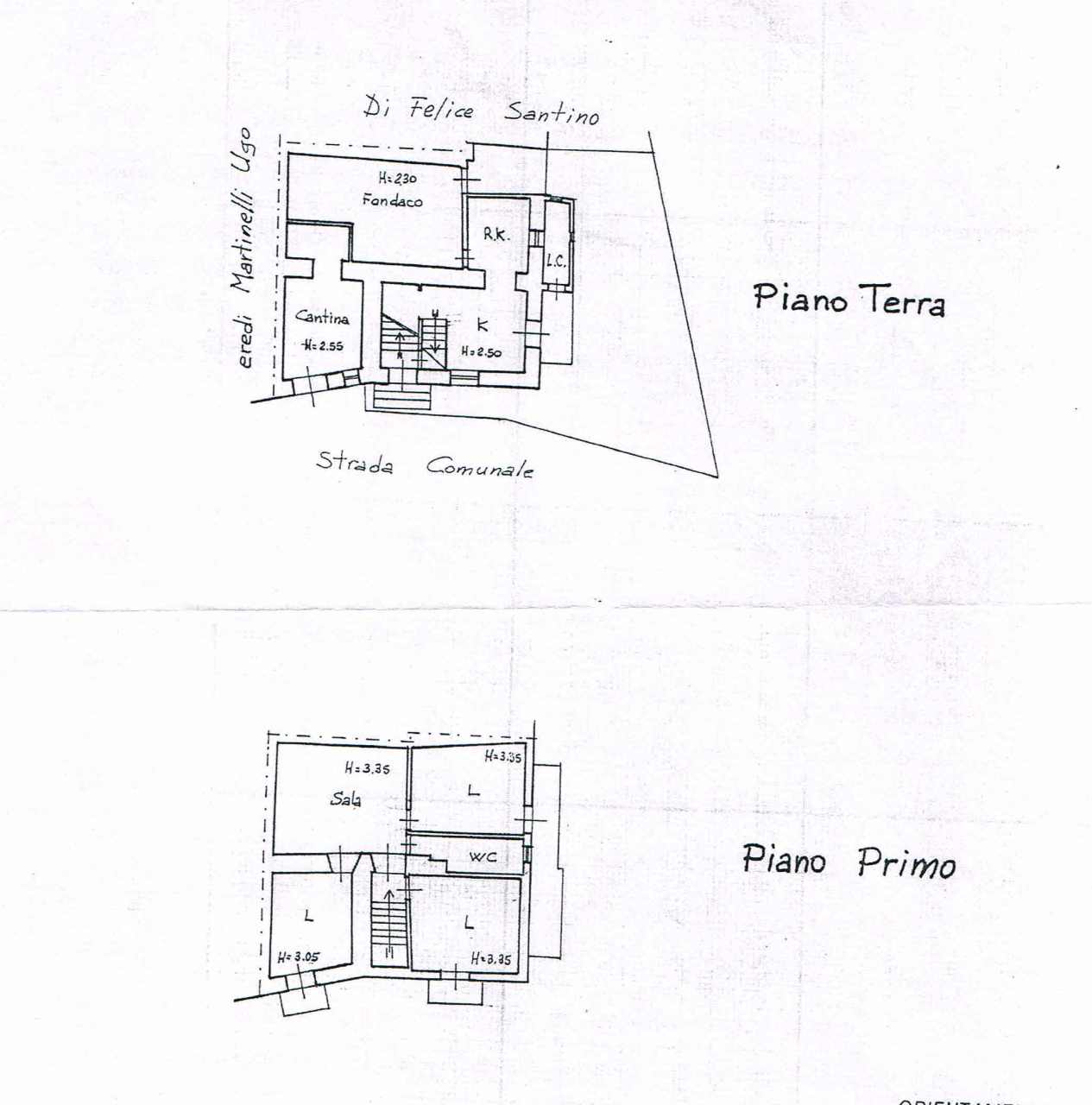 La superficie h di circa mq. 135 circa e h cosl suddivisa: Piano terra, cucina con camino, cucinotto, cantina e fondaco; piano primo, tre camere da letto, bagno e sala, al piano sottotetto soffitta.