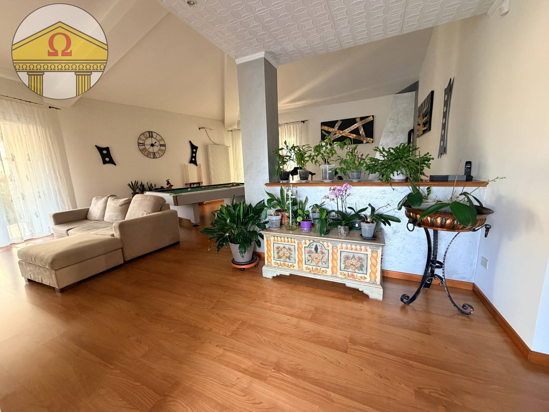 Distribuzione degli Spazi: PIANO RIALZATO (Il cuore della casa): Un generoso ingresso conduce allo spettacolare soggiorno di 52 mq, valorizzato da ampie vetrate che si affacciano sul portico.