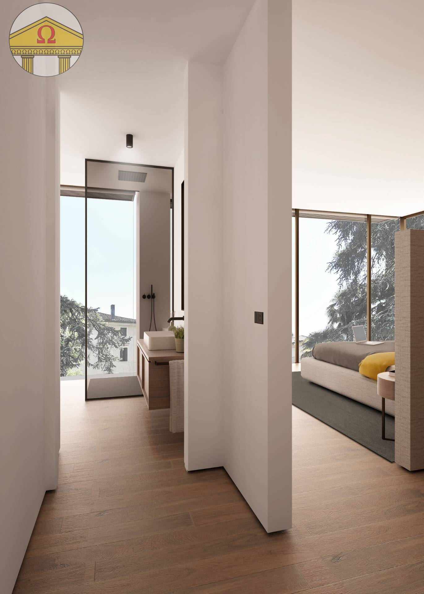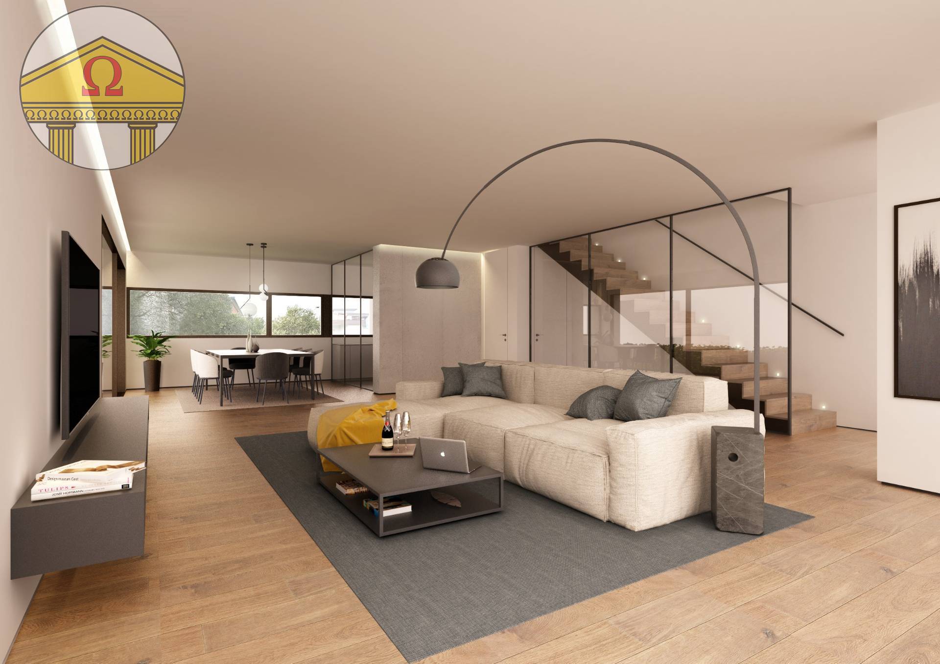 Distribuita su due livelli fuori terra con 250 mq di giardino, l'abitazione presenta una metratura calpestabile di oltre 200 mq. Una zona giorno di mq 68, quattro camere da letto, quattro bagni, garage e terrazze, tutto circondato da moderne vetrate conferiscono alla villa caratteristiche moderne e funzionali anche per famiglie numerose o per clienti che cercano il prestigio abitativo a 5 minuti a piedi dall'universit o da Piazza dei Signori.