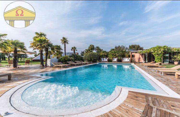 Una dependance esterna al blocco principale composta da porticato, due ampi ambienti, cucina e servizi sono a disposizione di una splendida piscina con idromassaggio , interamente in mosaico, docce e area solarium per il pi completo relax.