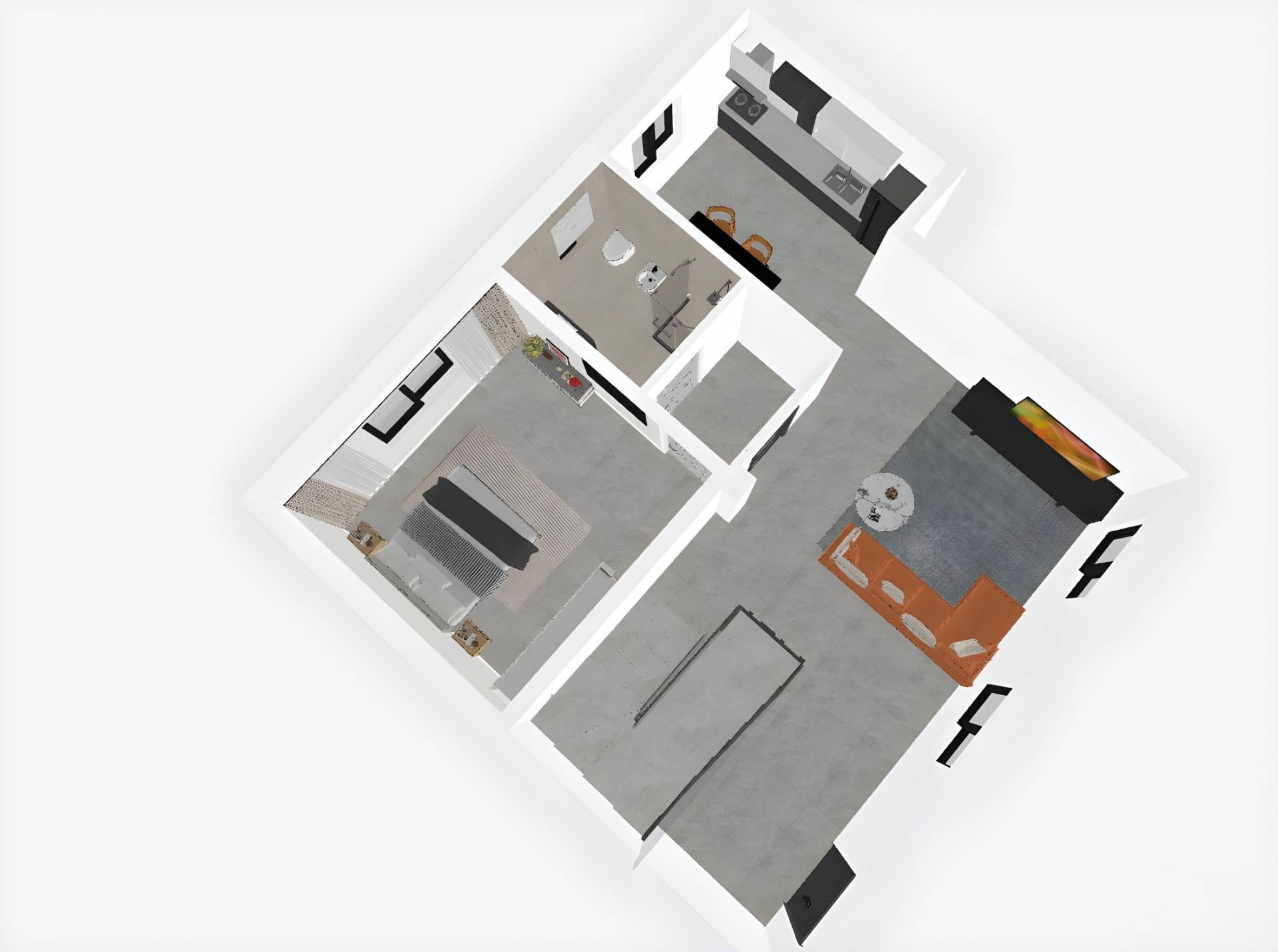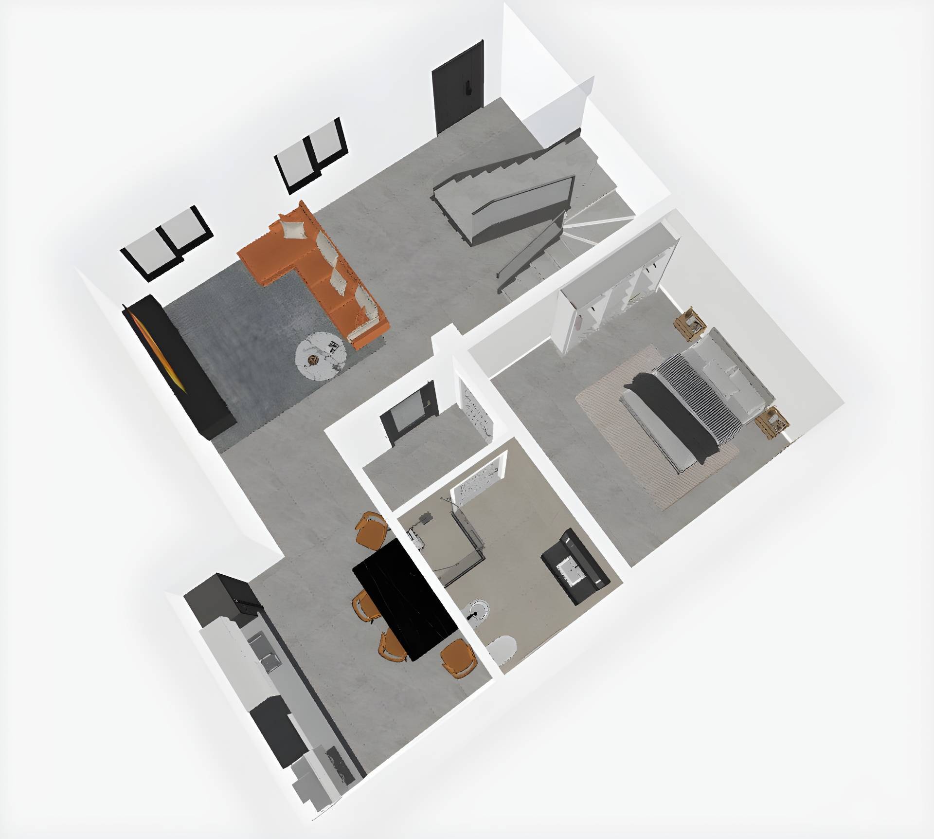 L'immobile si presenta allo stato grezzo, da personalizzare con materiali e finiture a scelta del cliente, e si compone di ingresso al piano terra sull'ampio soggiorno, cucina separata abitabile, disimpegno notte che comprende una camera matrimoniale e bagno principale con finestra.