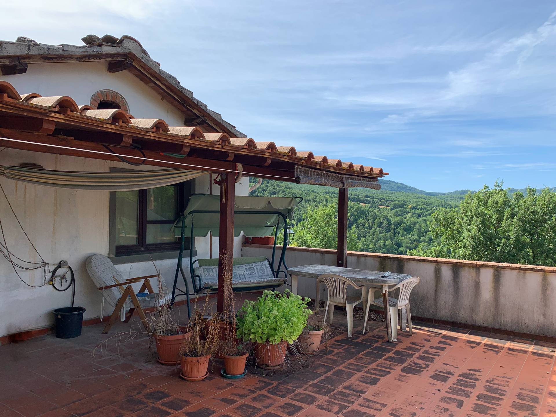 bibbiena - localita' banzena - zona tranquilla e a pochi minuti di auto da bibbiena - vendesi terratetto sviluppato su due livelli - cosi' composto: piano terra - ingresso da resede esclusivo lastricato recintato su piccolo disimpegno con scala di accesso al piano superiore, soggiorno con camino, cucina abitabile, ripostiglio e bagno; piano primo - soggiorno con secondo ingresso da ampia terrazza panoramica, cucinotto, disimpegno, studio con bagno e soppalco, camera e sottotetto.