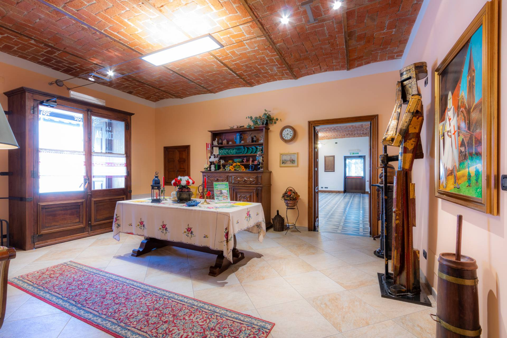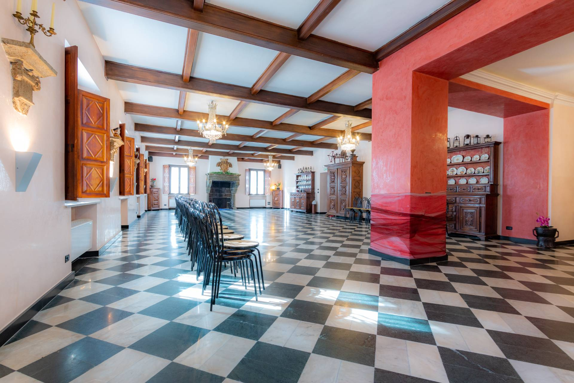 L'attuale impegnativa opera di ristrutturazione della parte relativa alla ristorazione, pur ricalcando pressoch integralmente l'antica struttura ha permesso l'introduzione dei necessari miglioramenti per l'adeguamento alle vigenti normative sia dal punto di vista igienico-sanitario, sia della sicurezza degli ambienti che dell'incendio con la predisposizione delle necessarie vie di fuga. Il complesso con il suo notevole bagaglio di storicit stato dotato delle attrezzature per la cucina e dei migliori comfort per adeguarlo alla sua nuova destinazione di Location ideale per qualsiasi evento; i locali a destinazione d'uso commerciale hanno una superficie complessiva di circa 440 mq e sono cos composti: reception, angolo bar con sala di intrattenimento, ampia cucina, sala ristorante con splendido camino, zona dispensa, guardaroba, spogliatoi del personale, servizi comprensivi di bagno disabili, ufficio, deposito e uscite di sicurezza.