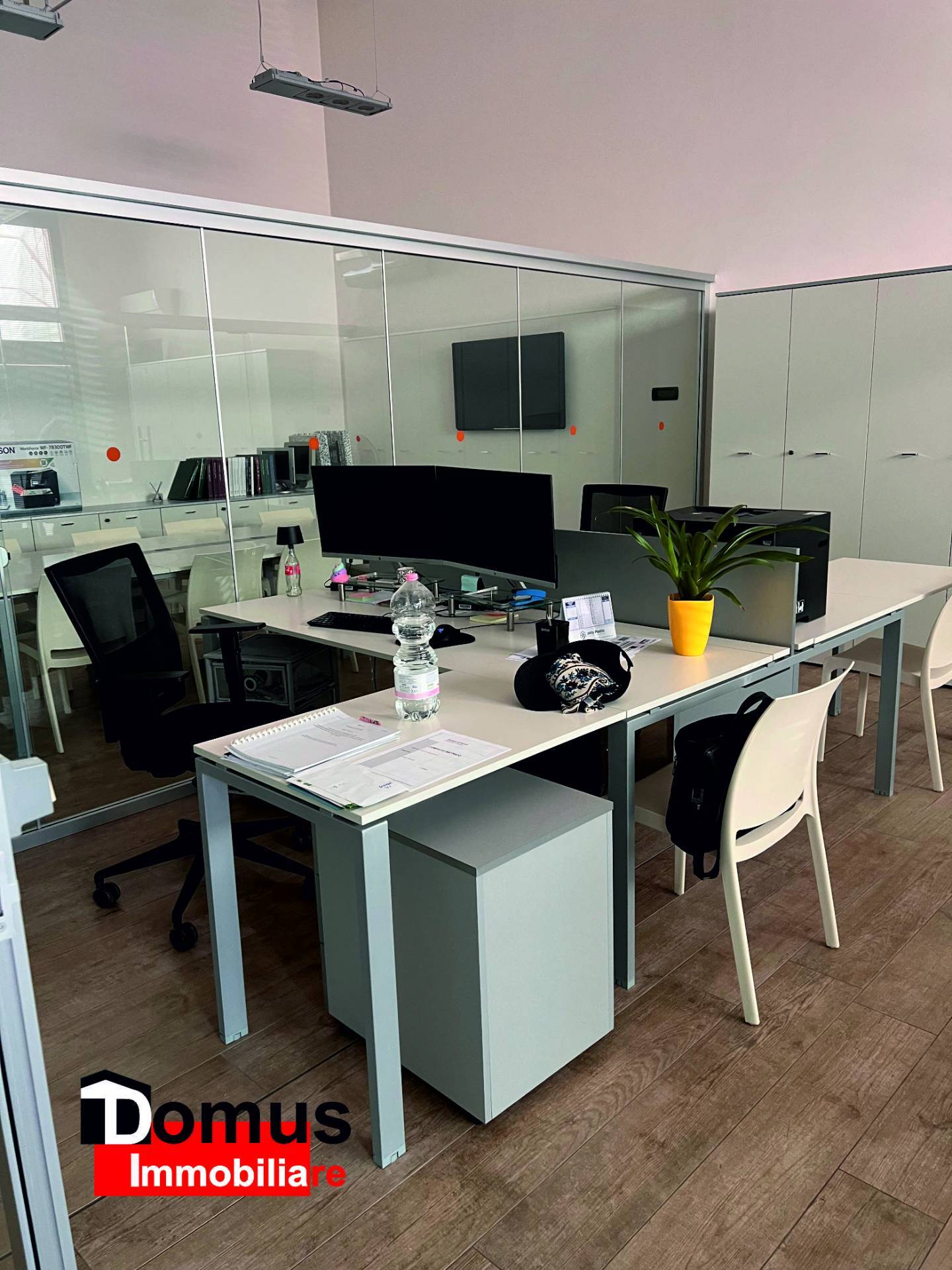L'immobile, completo di 2 ampie vetrine, si compone di: ingresso con zona sala d'attesa, 4 uffici suddivisi con pareti in vetro antisfondamento, una sala riunioni, zona relax e vano soppalcato adatto ad uso archivio.