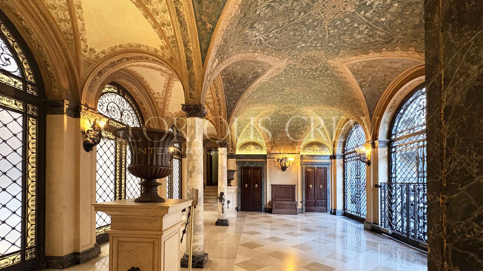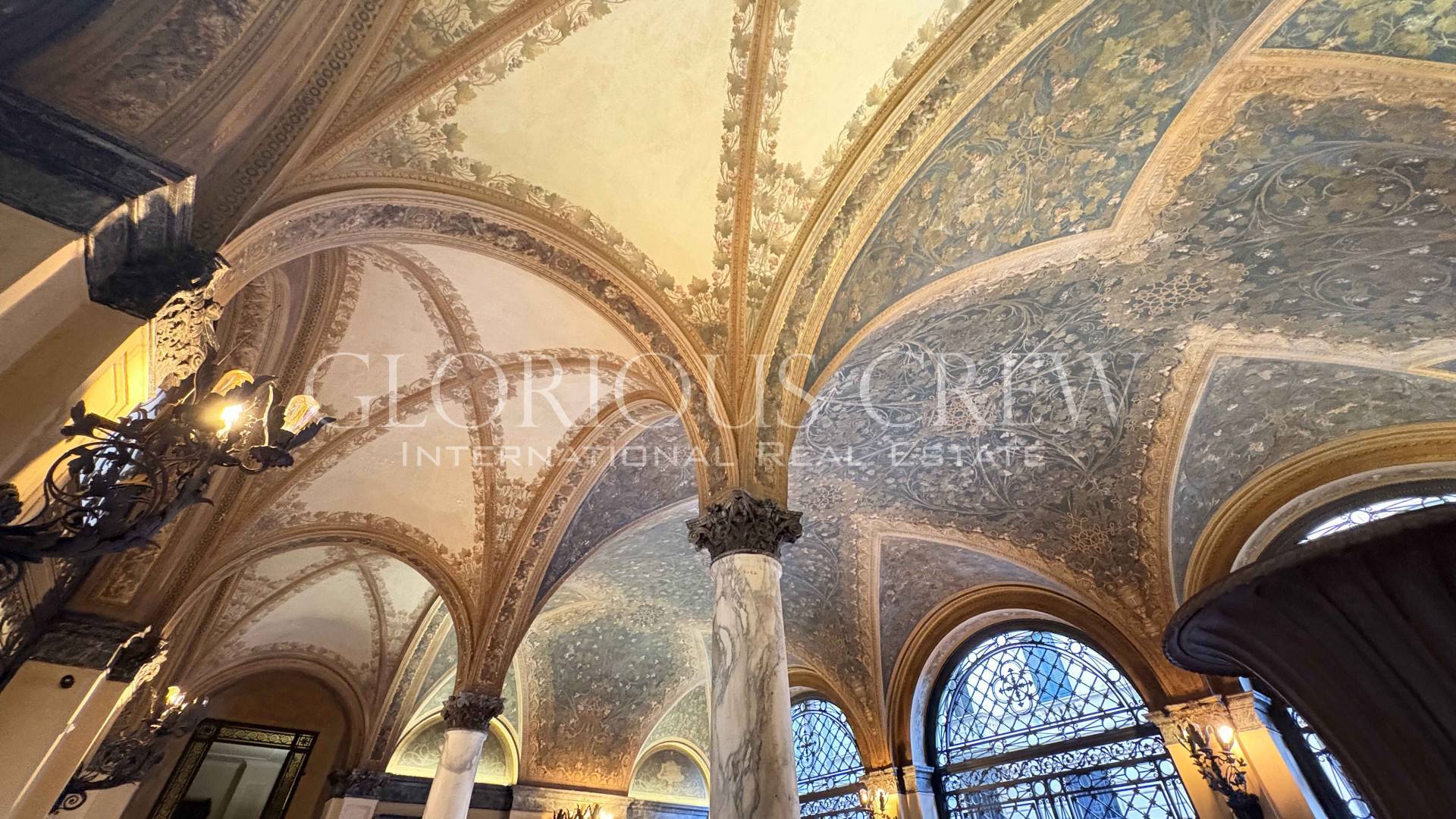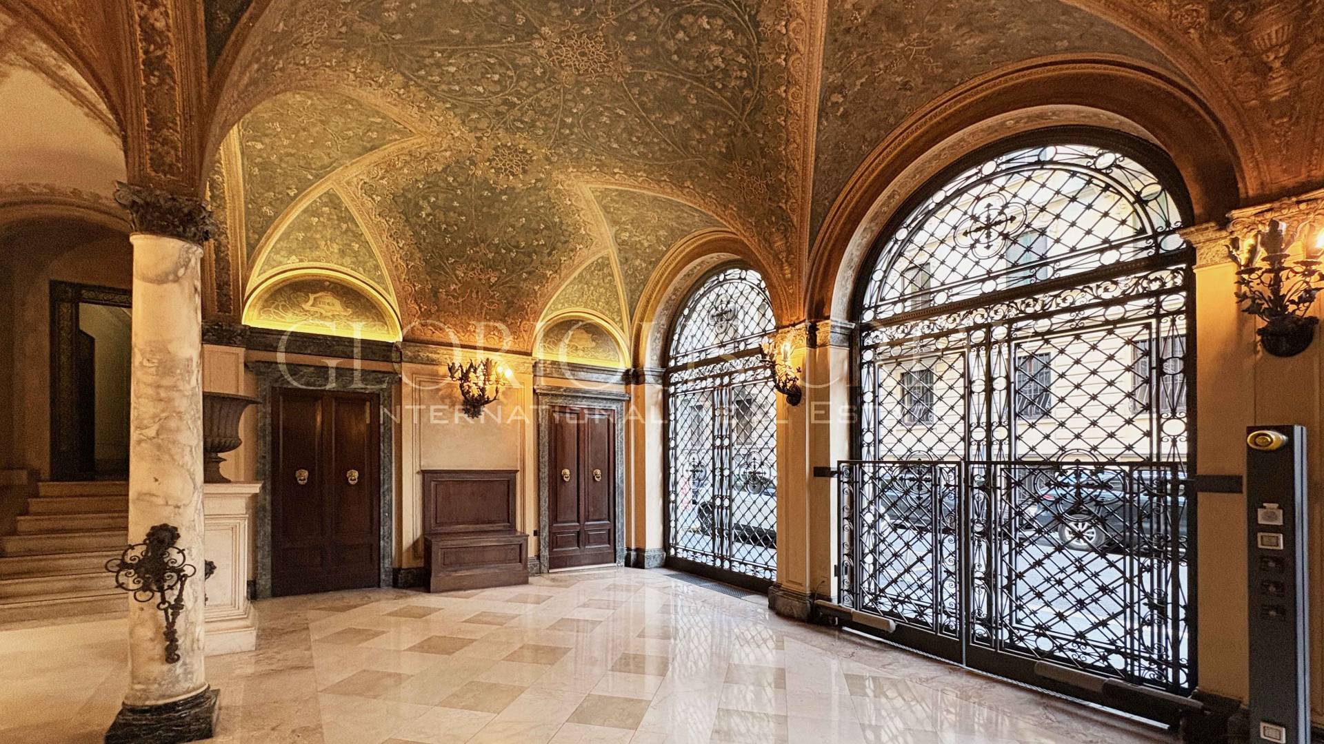 I pavimenti in parquet depoca a spina di pesce e gli infissi in legno con doppi vetri conferiscono fascino e comfort, rendendo lunit ideale per studi professionali o sedi direzionali di societ strutturate.