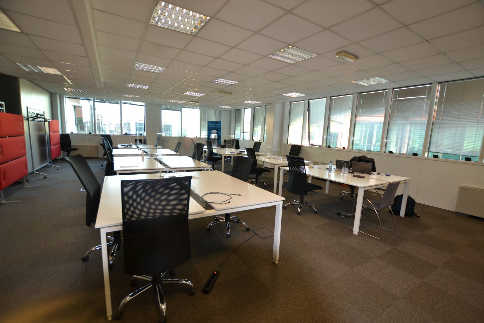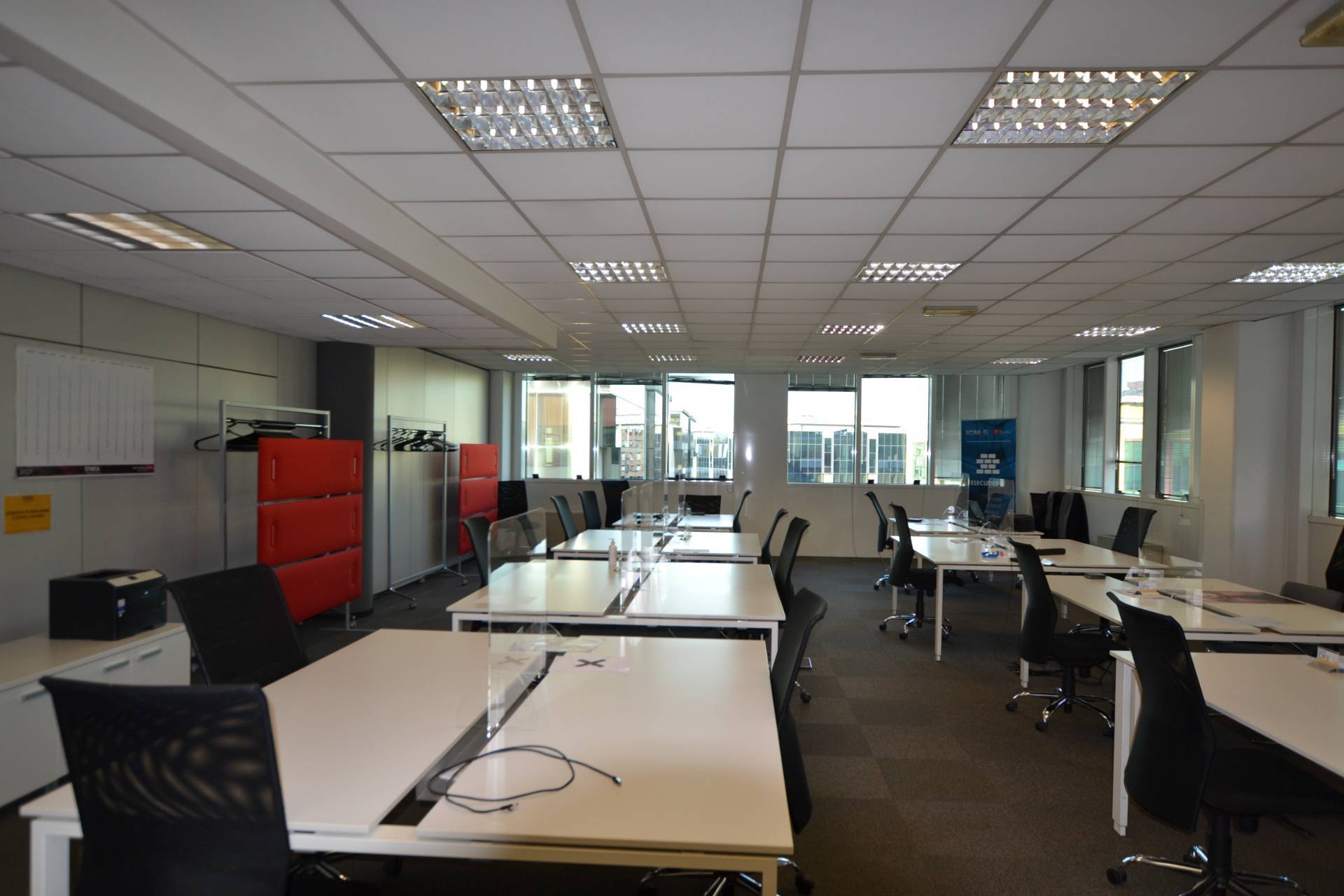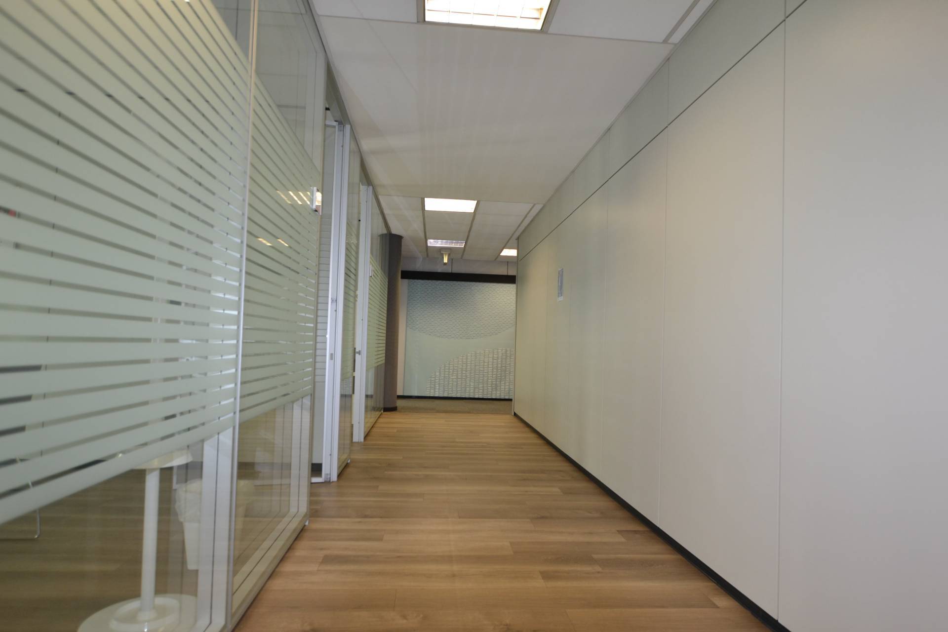 L'ufficio, situato al piano secondo, si sviluppa su una superficie complessiva di 800 mq commerciali, all'interno gli spazi sono suddivisi da eleganti pareti in vetro.