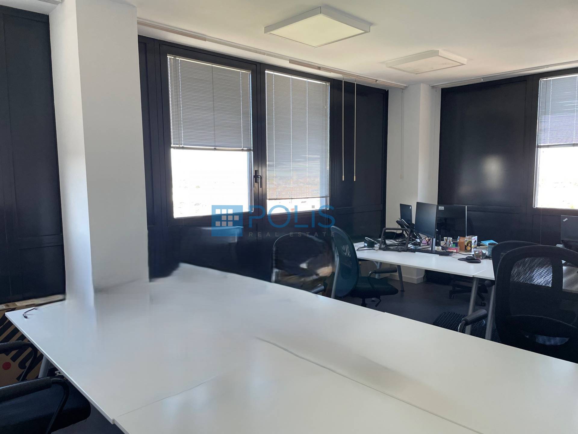 L'ufficio, luminoso e ben distribuito, composto da ingresso, tre funzionali uffici, ampia sala operativa e doppi servizi con antibagno.