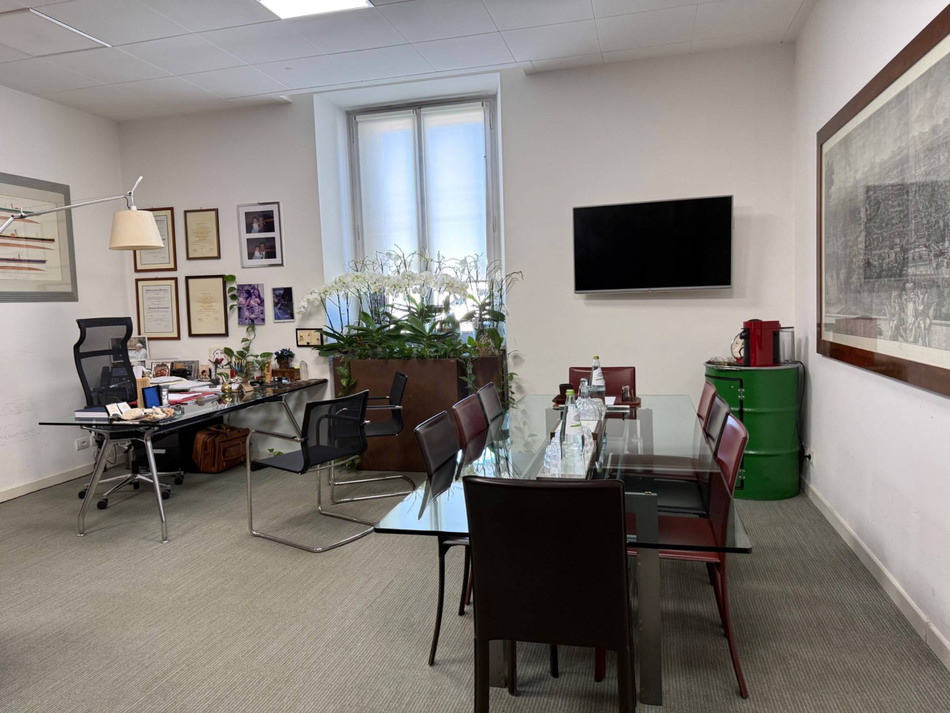 Lufficio gode di affacci completamente esterni, risulta molto luminoso, con scorci panoramici e unatmosfera di grande rappresentanza.