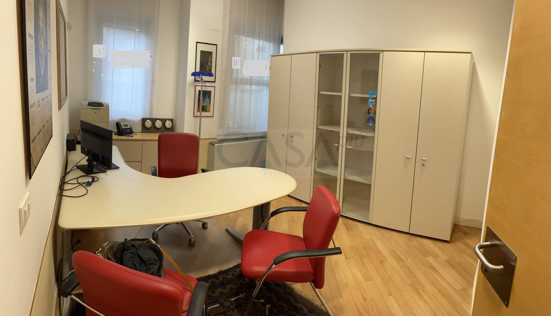 Due delle stanze sono utilizzate da due professionisti di settori differenti, ne rimangono ancora quattro disponibili di cui tre di circa 14 mq ognuna ed una stanza di circa 35 mq . La stanza proposta, ha una superficie di 35 mq circa.