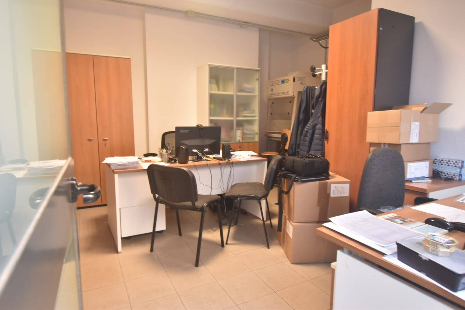 L'immobile suddiviso in tre ambienti: due spazi climatizzati ideali per uffici e attualmente adibiti ad uso ufficio e un terzo ambiente ad uso deposito, dotato di doppio accesso carrabile.