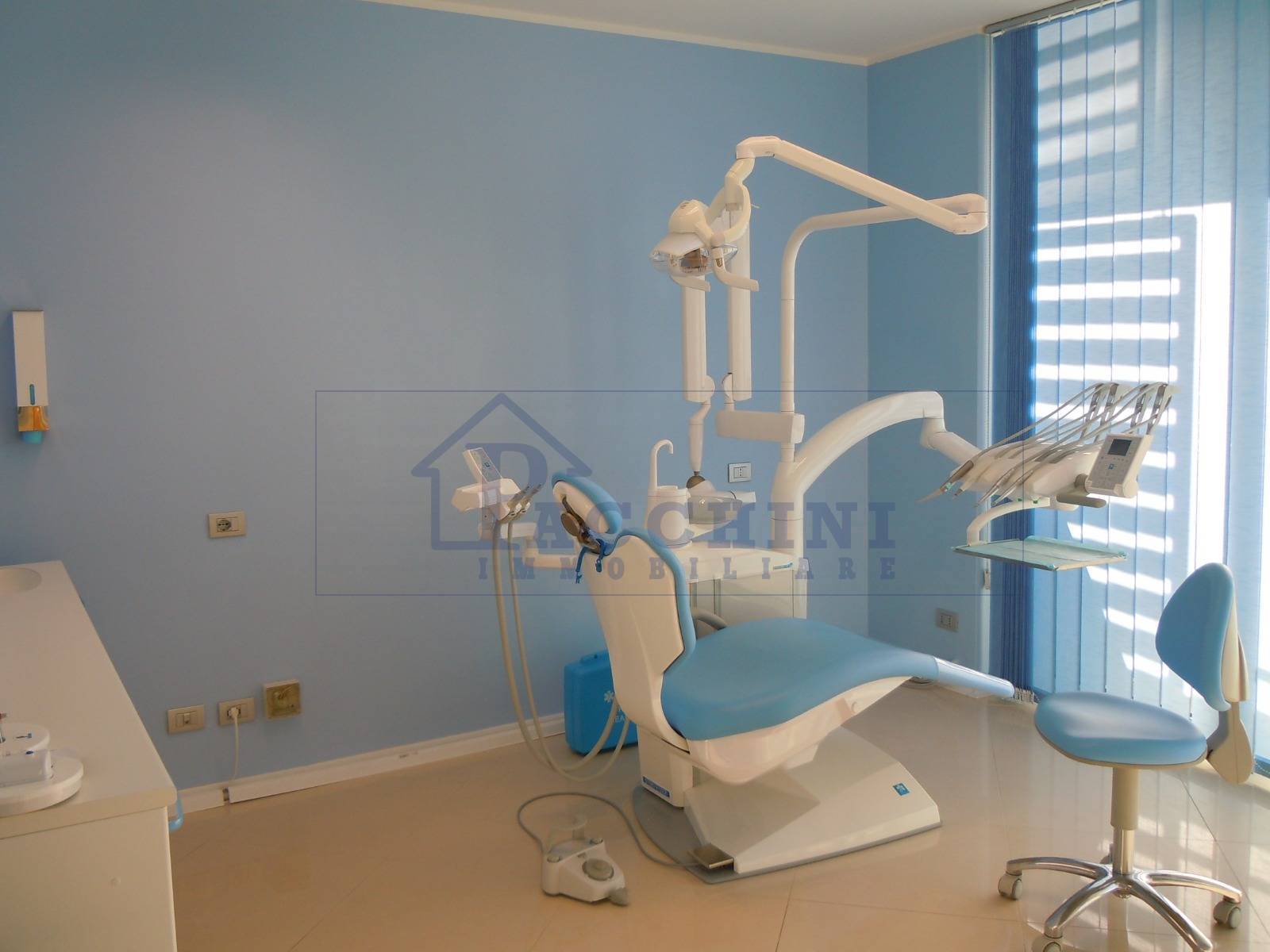 Lo studio composto da ingresso -saletta di attesa, due stanze operative con impianti attrezzati per studio medico dentistico, entrambe con porte finestre sul balcone esclusivo, piccola stanza operativa con finestra, bagno, cantina e posto auto esclusivo.