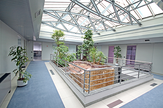 Spazi interni totalmente open space con divisione interna tramite pareti mobili, pavimentazione flottante, impianto di riscaldamento e condizionamento, ascensori e montacarichi.