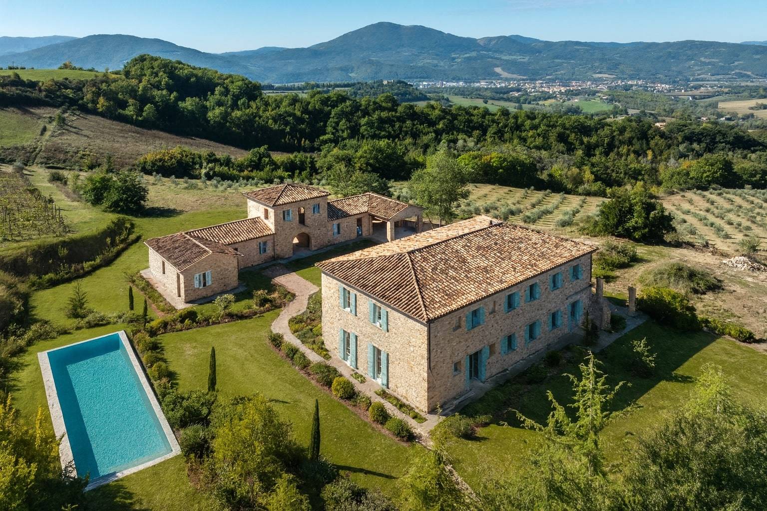 DESCRIZIONE PROPRIETA' Situata in posizione dominante e baciata da una vista mozzafiato sulle colline della Val Tiberina, questa straordinaria propriet composta da due casali in pietra immersi in circa 8 ettari di terreno, arricchiti da oltre 3000 ulivi e da un incantevole vigneto in piena produzione.
