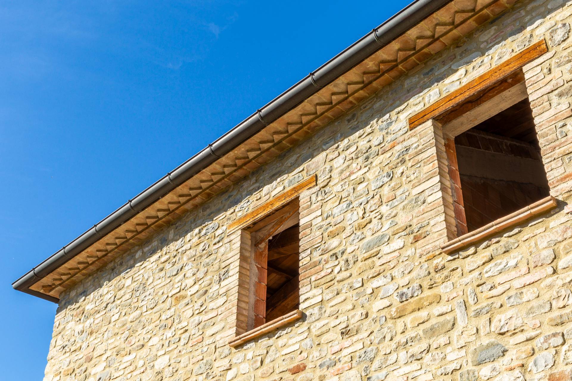 La solida struttura in cemento armato antisismico, il rivestimento in pietra locale e mattoni antichi, lefficiente sistema di isolamento termico e i soffitti alti con travi in castagno a vista conferiscono a questo complesso un fascino autentico e una qualit costruttiva rara sul mercato.